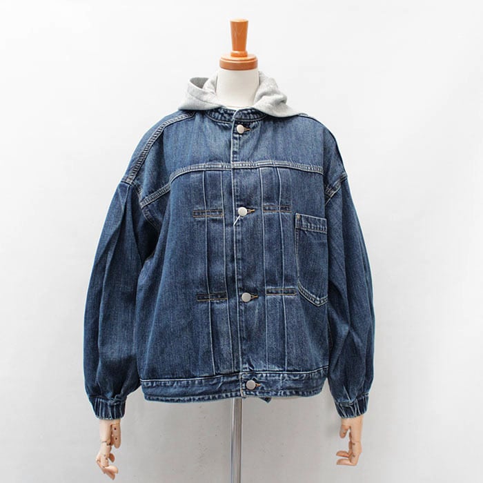 タックを施したバルーンスリーブが特徴的なデニムジャケットです。