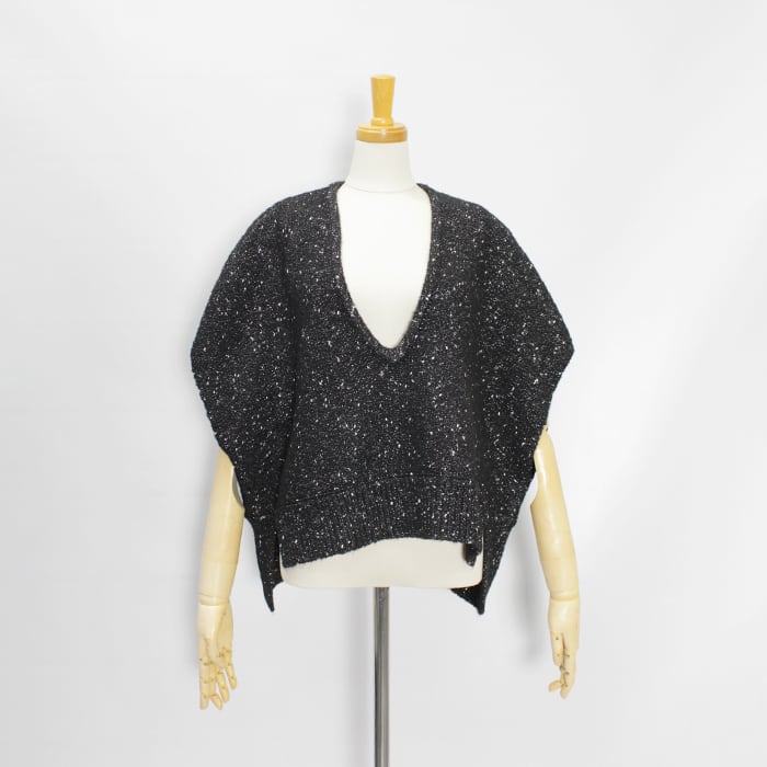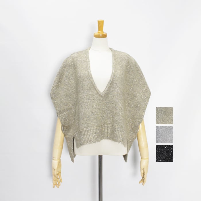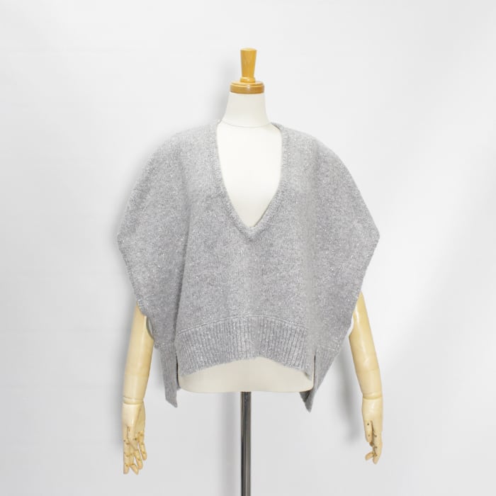 ラメ入りの糸で編まれた存在感のあるラメショートベスト。