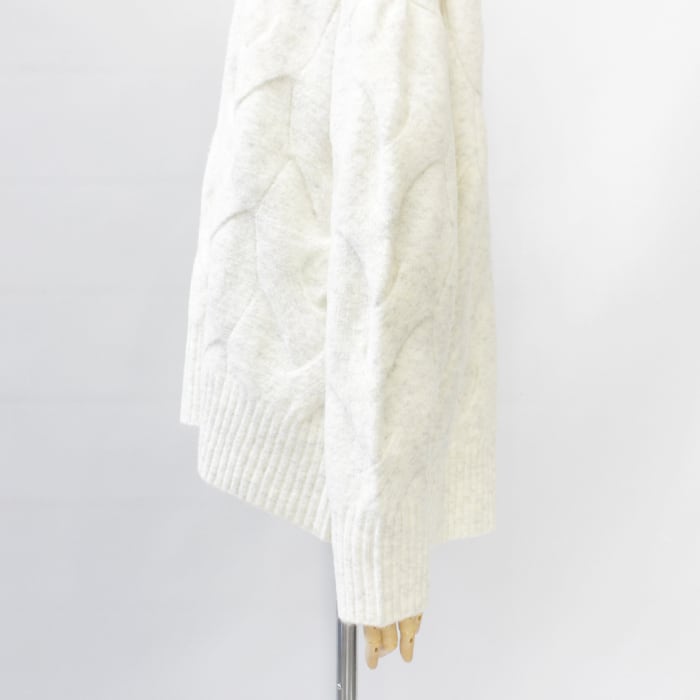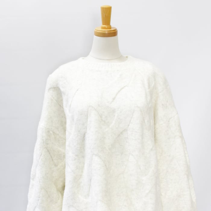 ワイドシルエットでざっくりとした立体感のあるケーブル編みが特徴のニットプルオーバー。