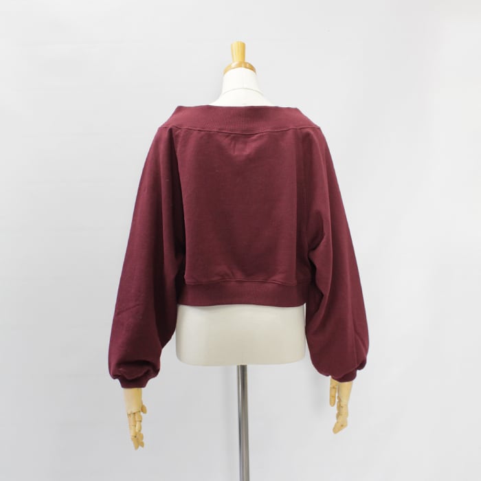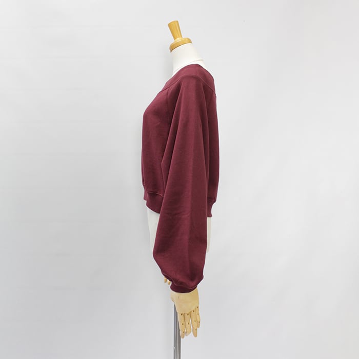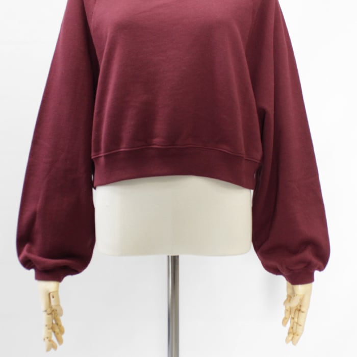 袖のボリューム感と広めのバストのバランスがポイントのスウェット。
