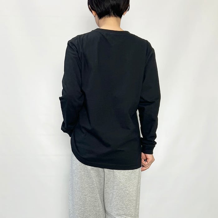 シンプルなロングスリーブTシャツながら、存在感のあるメッセージ性を放つ1枚です。