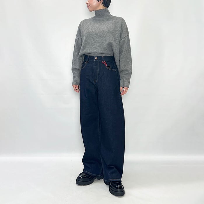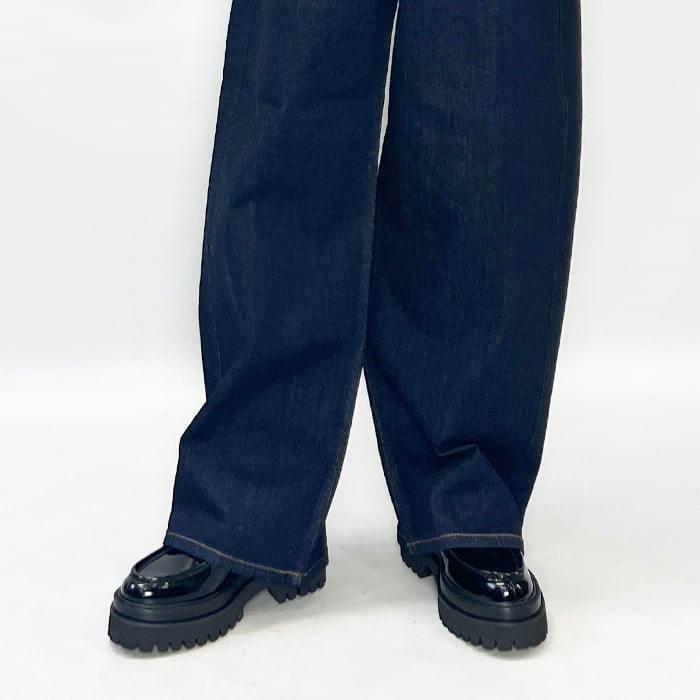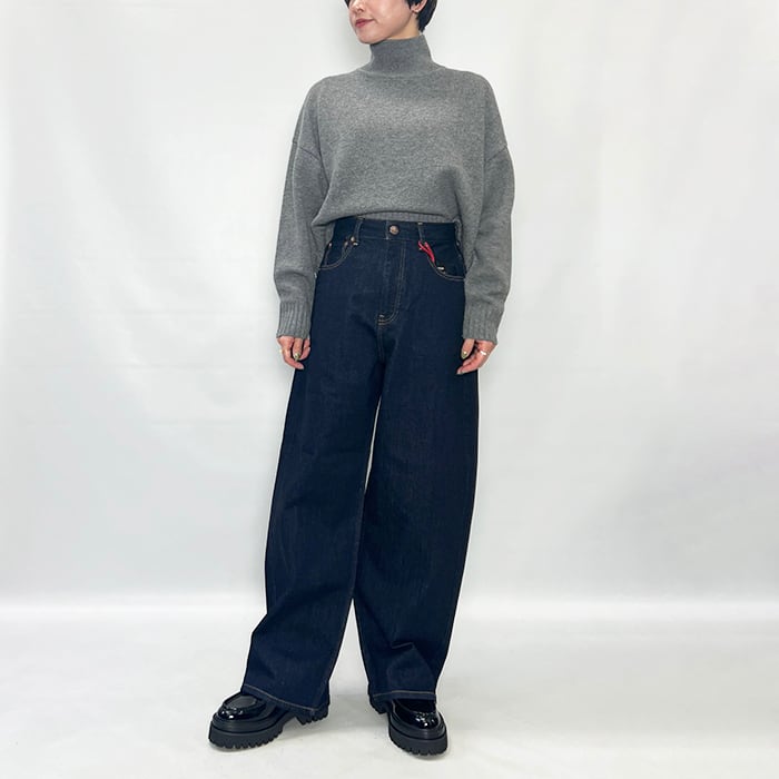 ボリュームのあるシルエットが魅力的で、これ一本でこなれ感が出せるデニムです。
