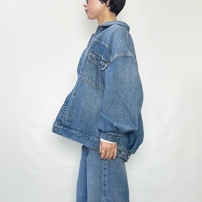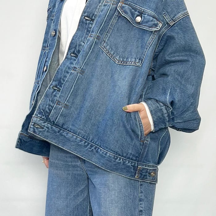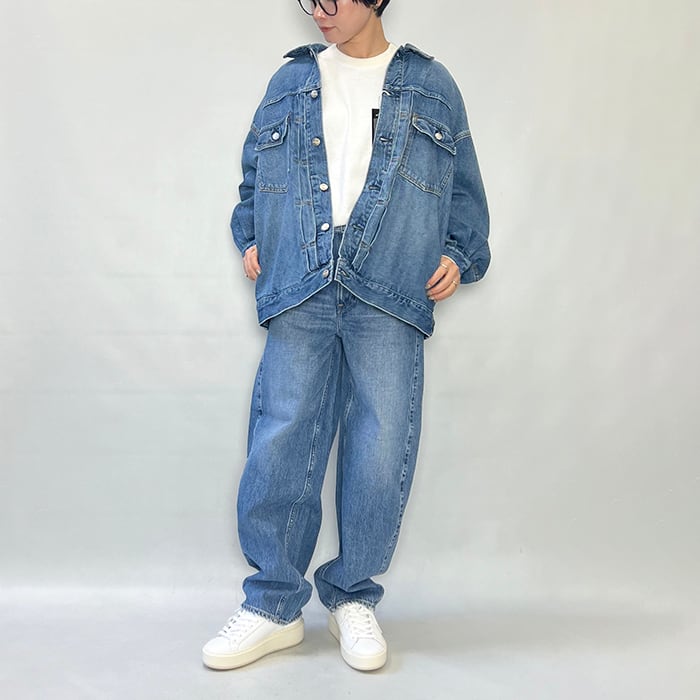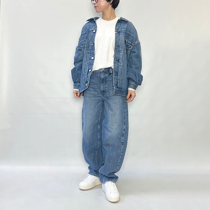 全体はオーバーサイズ設計で、肩を落としたルーズなラインがこなれた印象に。
