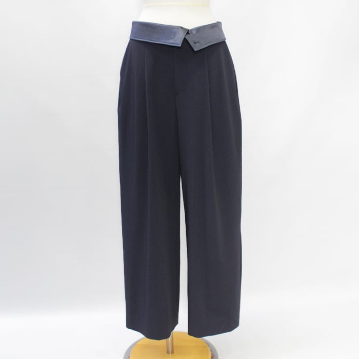 ウエストを折り返して穿くことをベースに考え、ウエスト裏地をサテン共色デザインに。
