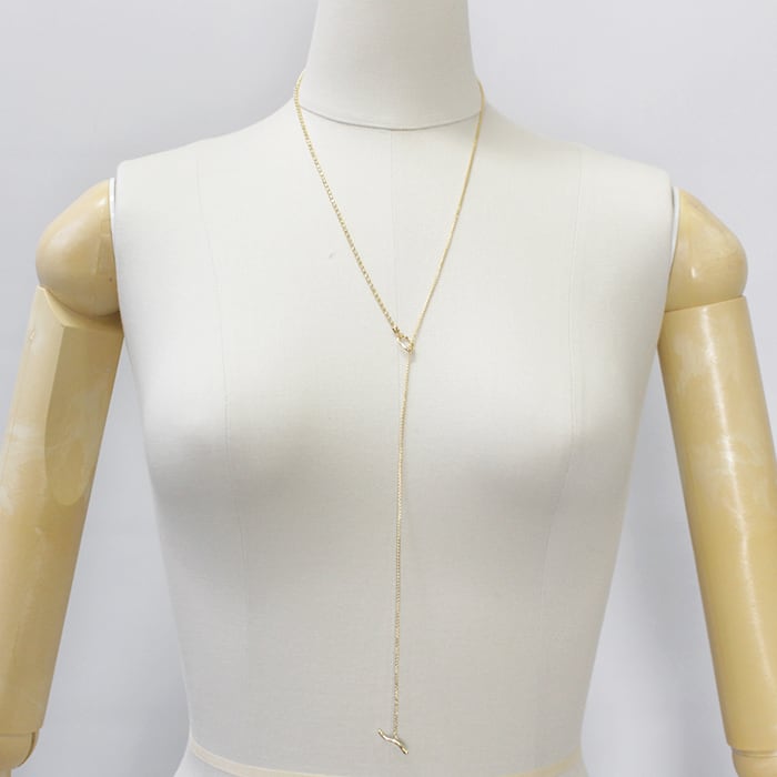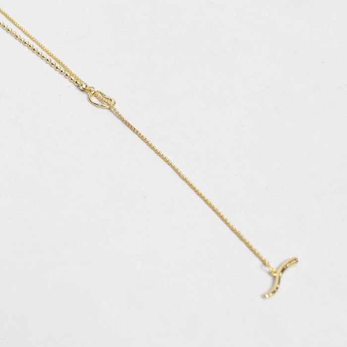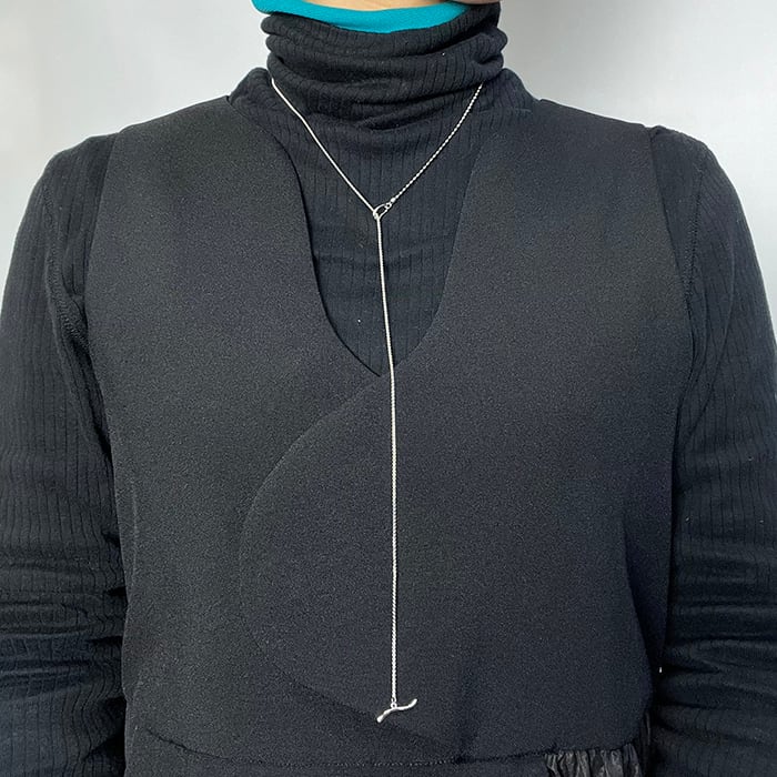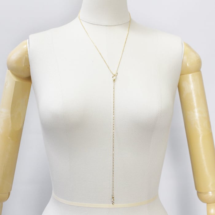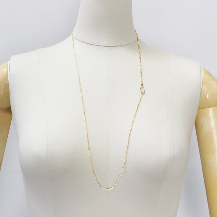 異なる形のチェーンが組み合わさったシンプルながらも存在感のあるマンテルネックレス。