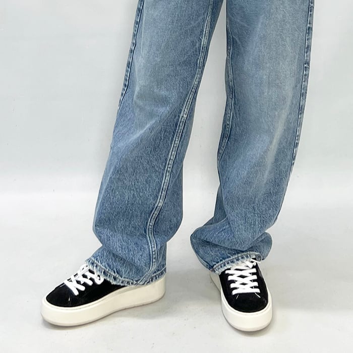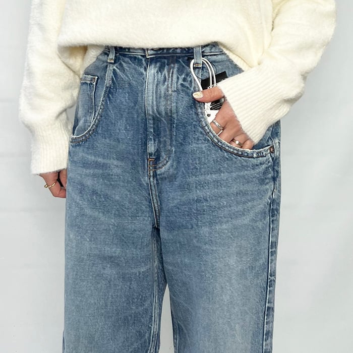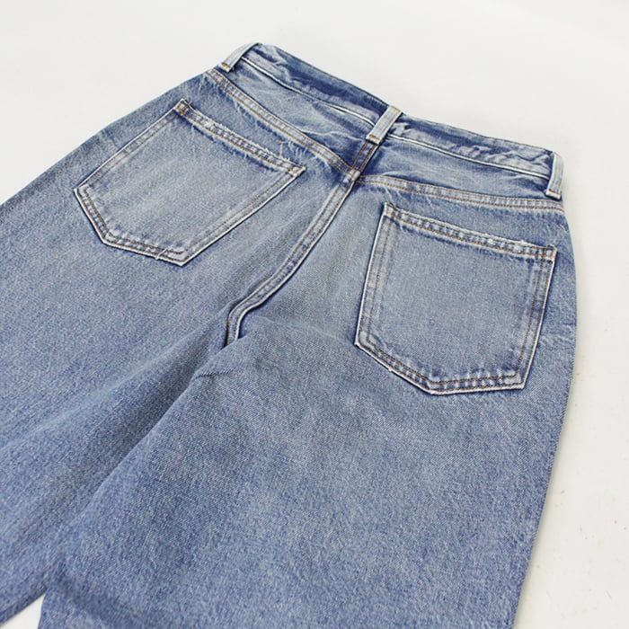 経糸、緯糸双方にリターンコットン(紡績工程で発生する未利用綿を回収して再利用した糸)を採用した、独特のアタリ・シボ感・風合いが特徴の綿100%デニム地使用で、見た目のわりに、軽量で柔らかい素材感。
