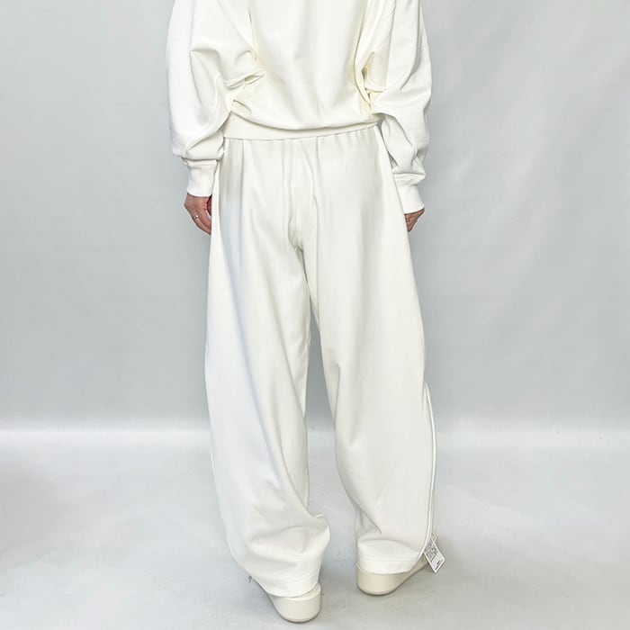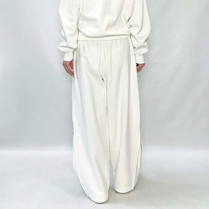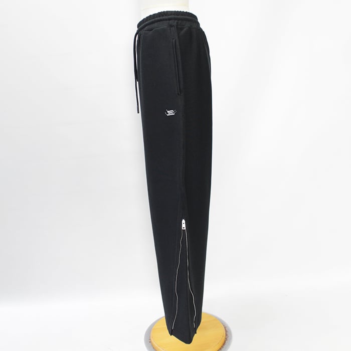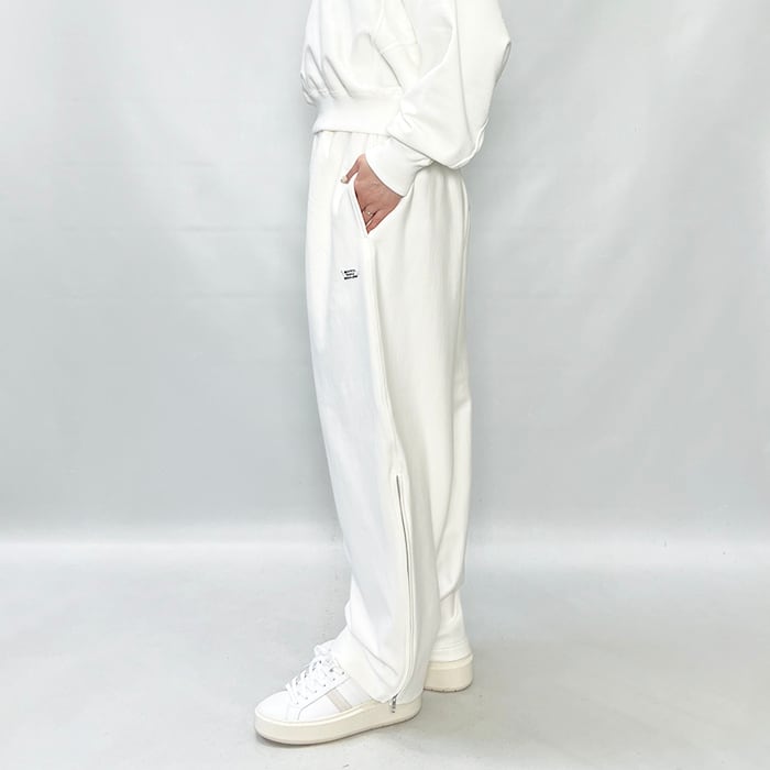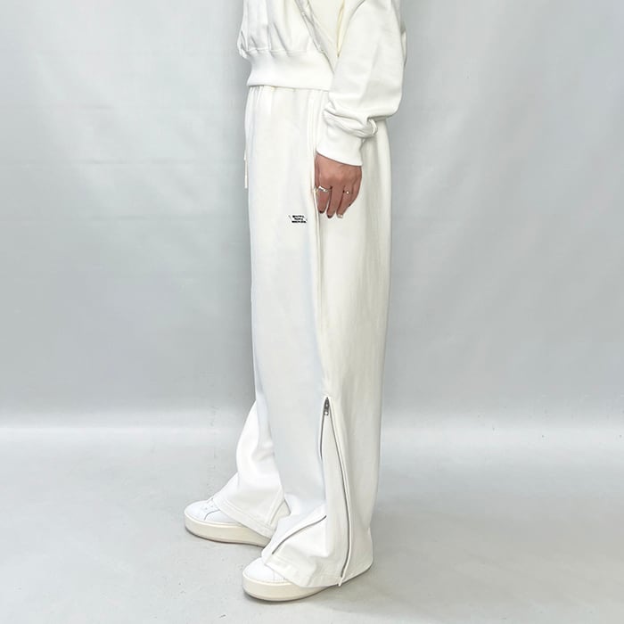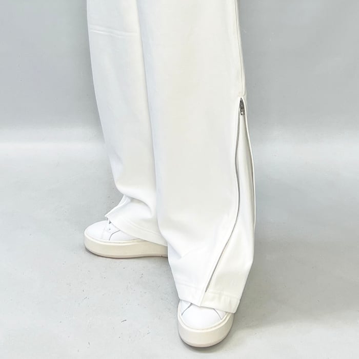サイドのZIP UPでシルエットが変化するイージーパンツ。