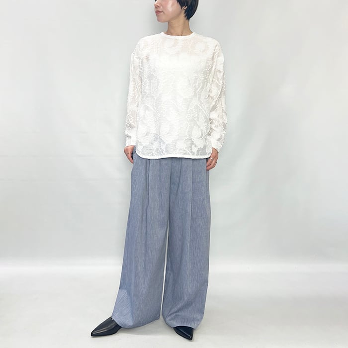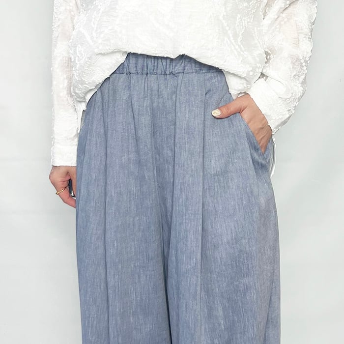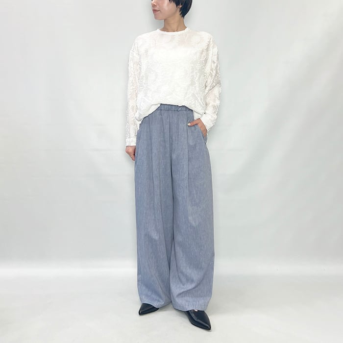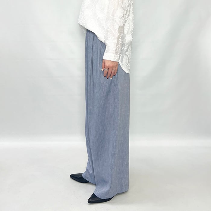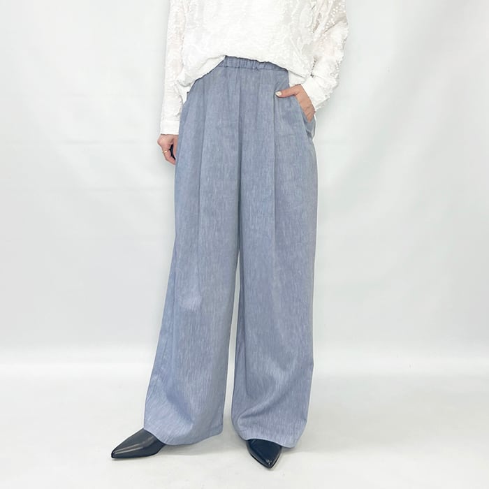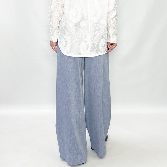 計算されたワイドシルエットが、歩くたびに優雅な雰囲気とリラックスムードを誘うパンツ。