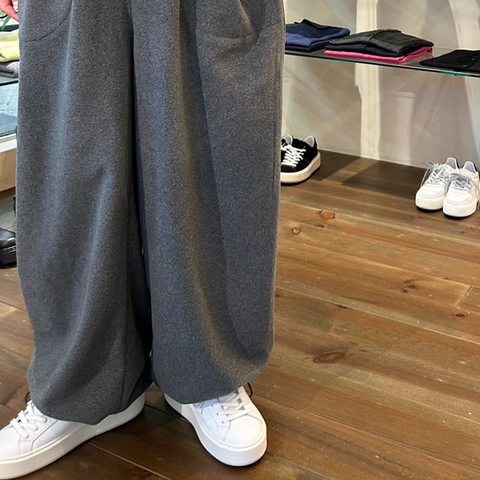 ウエストと裾にゴム紐のドロストをつけており、お好みで印象を変えて着用して頂けます。
