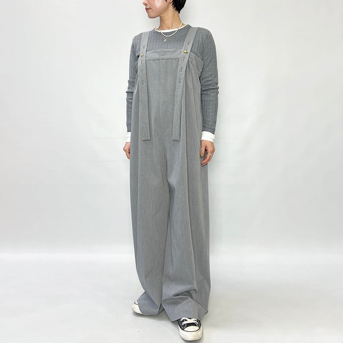 落ち感のある素材で、こなれ感漂うカジュアルすぎないサロペット。