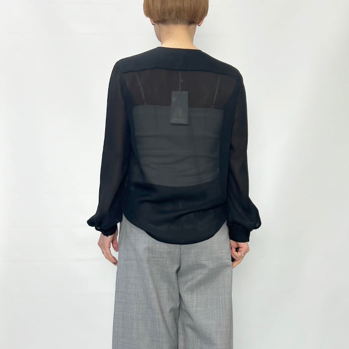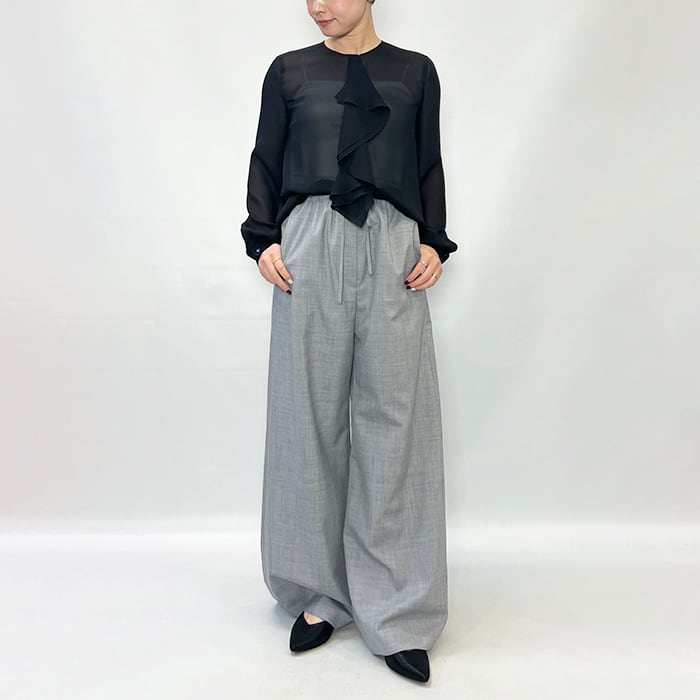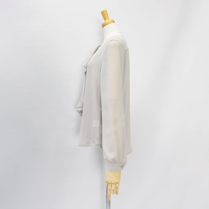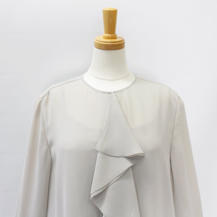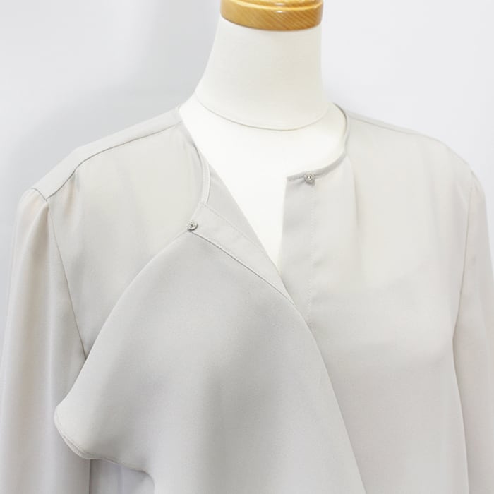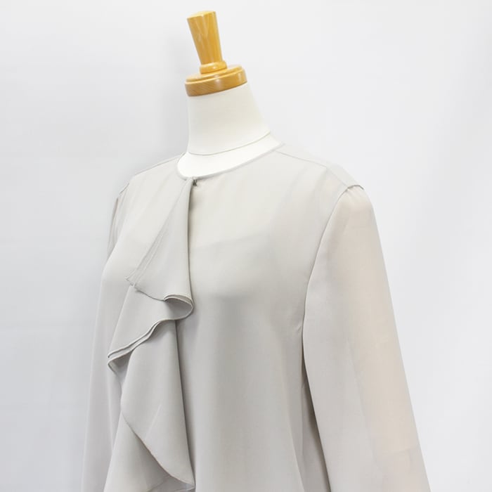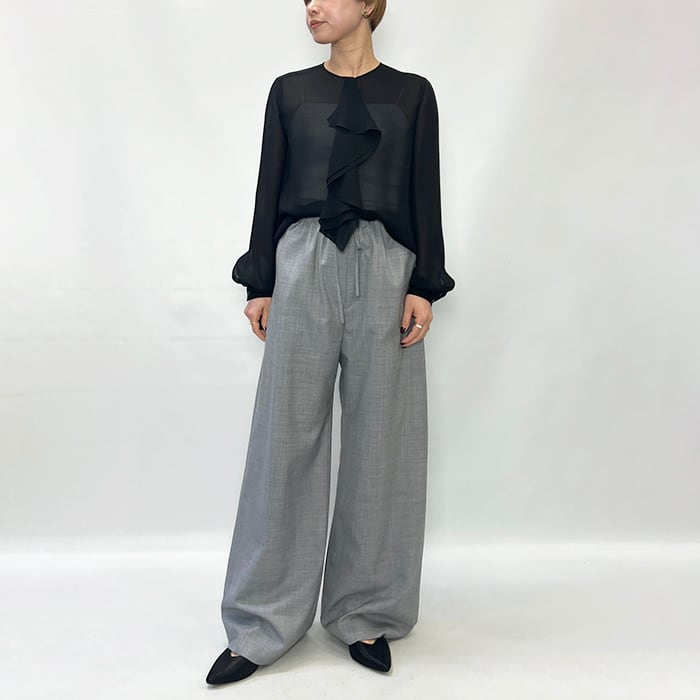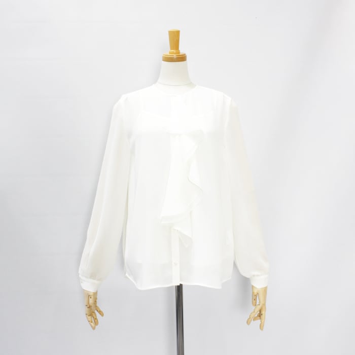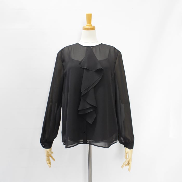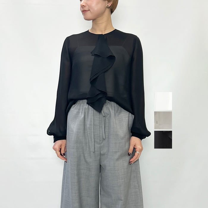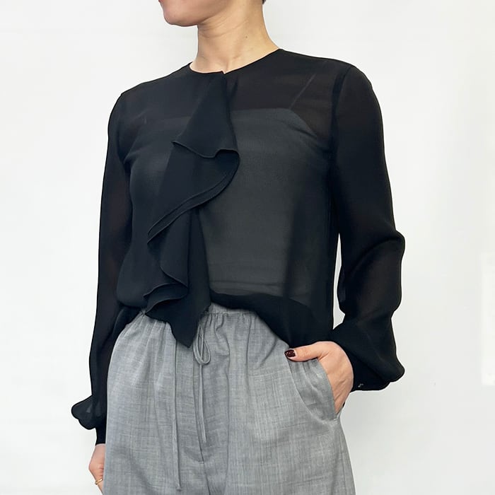 程よいシアー感に片フリルが付いたブラウス。