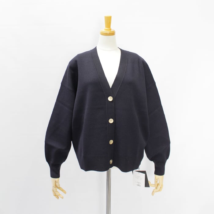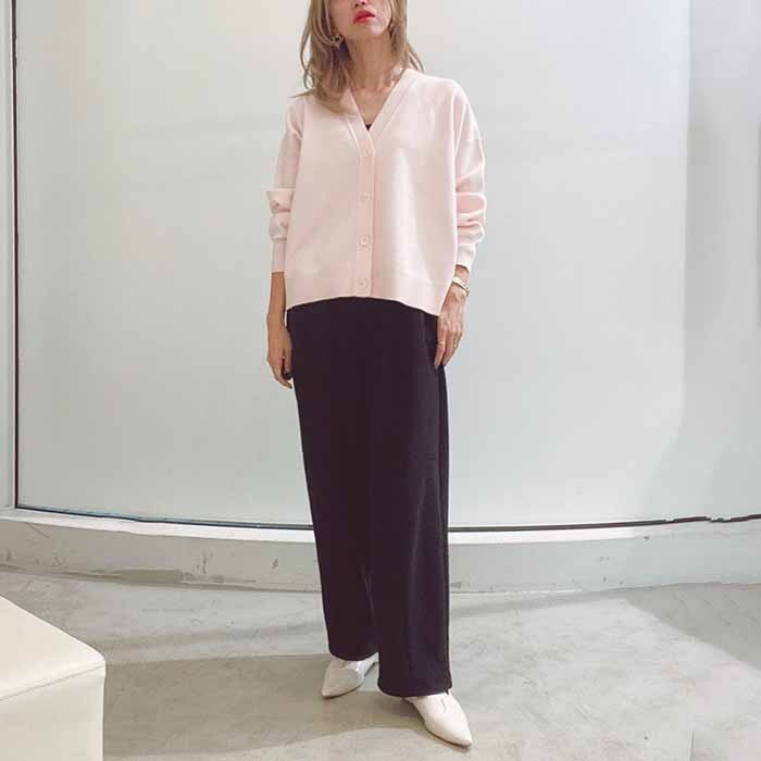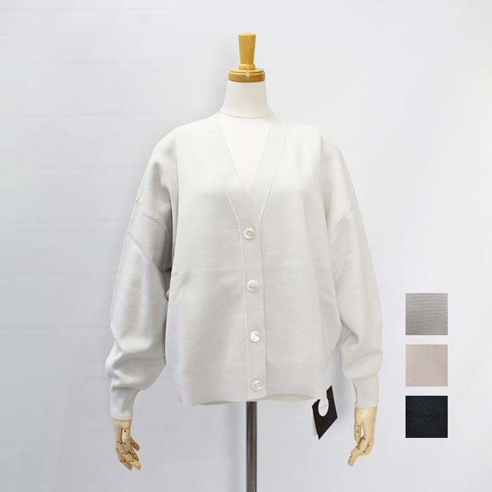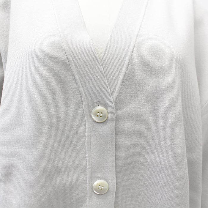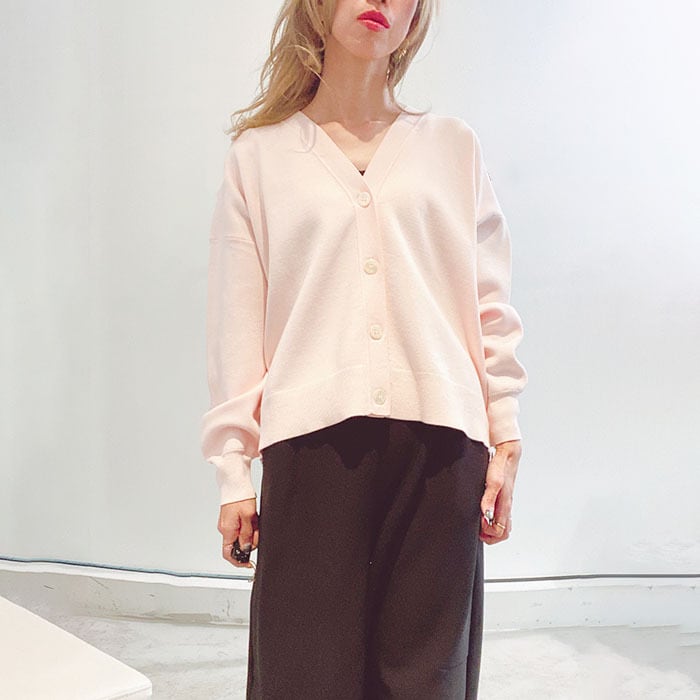 ゆるっとした身幅に、短めの着丈のミラノリブ編みVネックカーディガン。