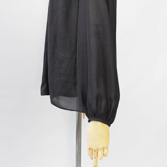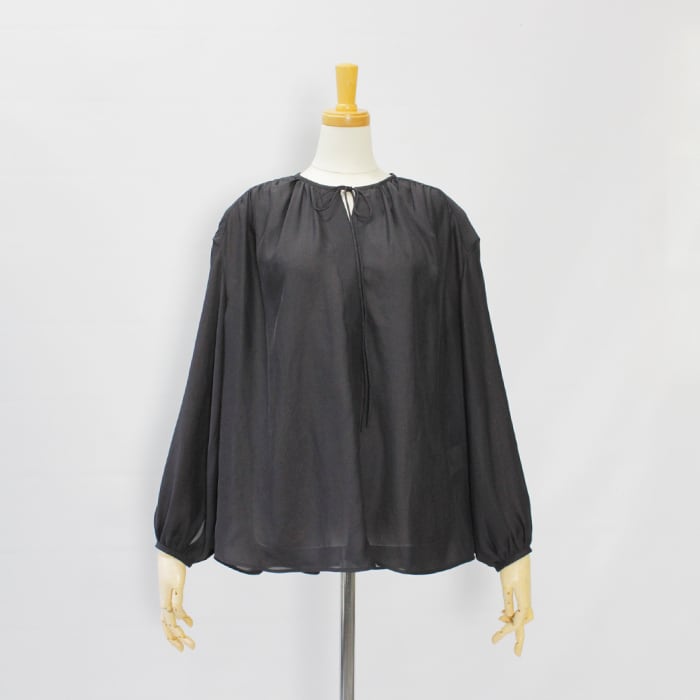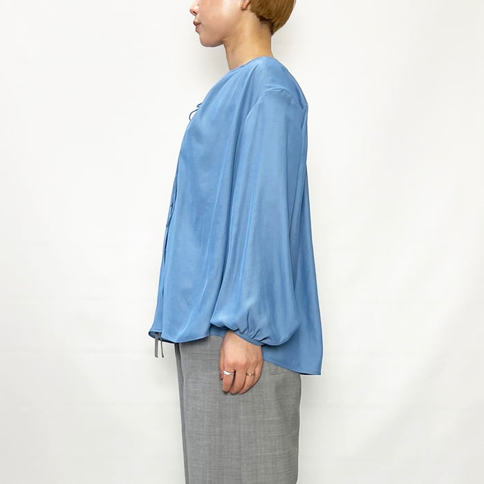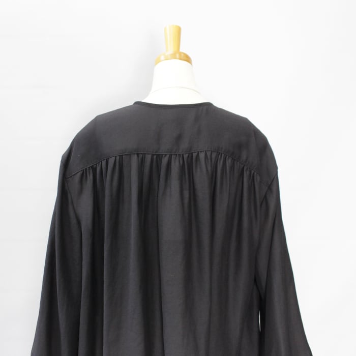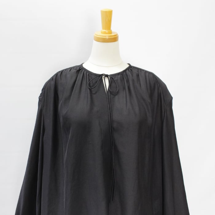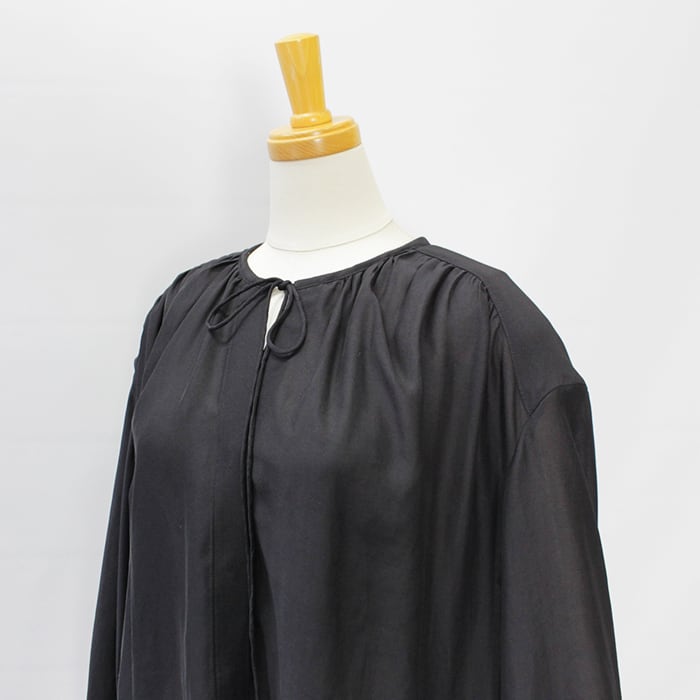 シンプルながらも衿元のギャザーや紐など細かなデザインにこだわりました。