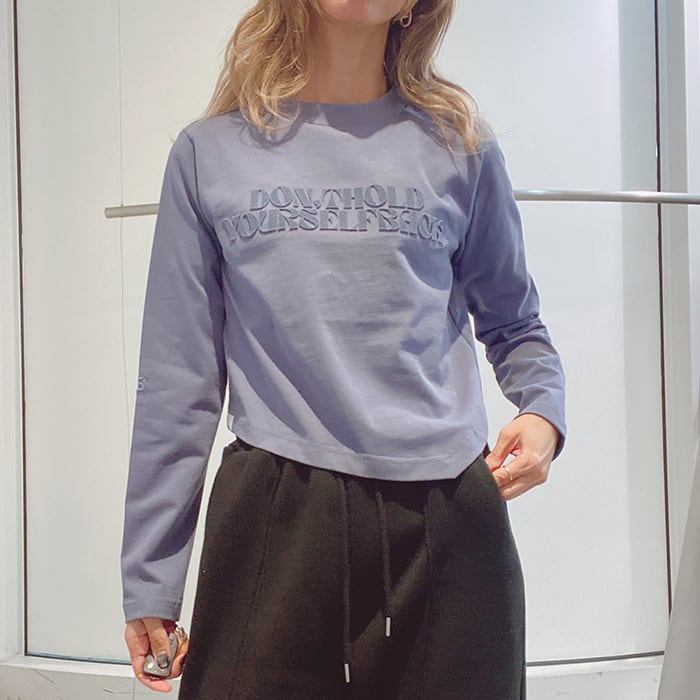フロントのメッセージプリントが程よいアクセントになったロングTシャツ。