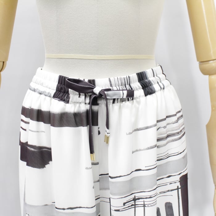ウエストはオールゴム仕様に加え、リボンをプラス。