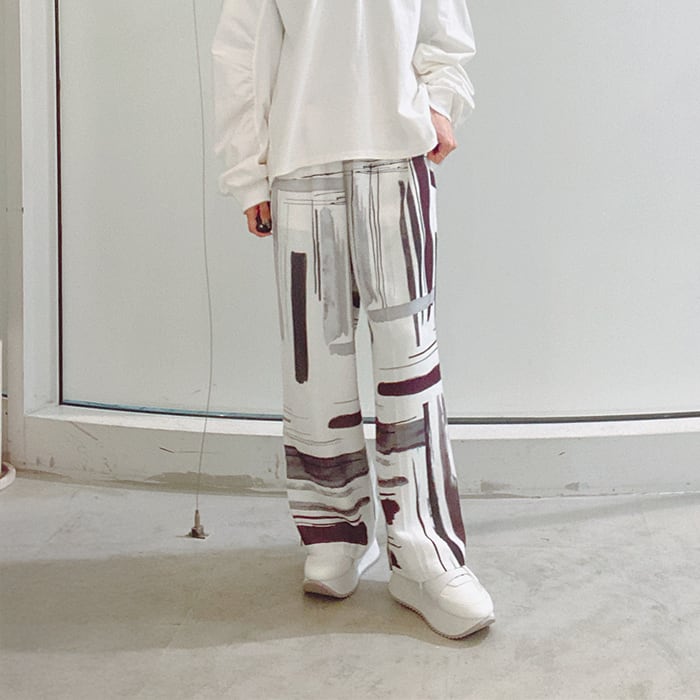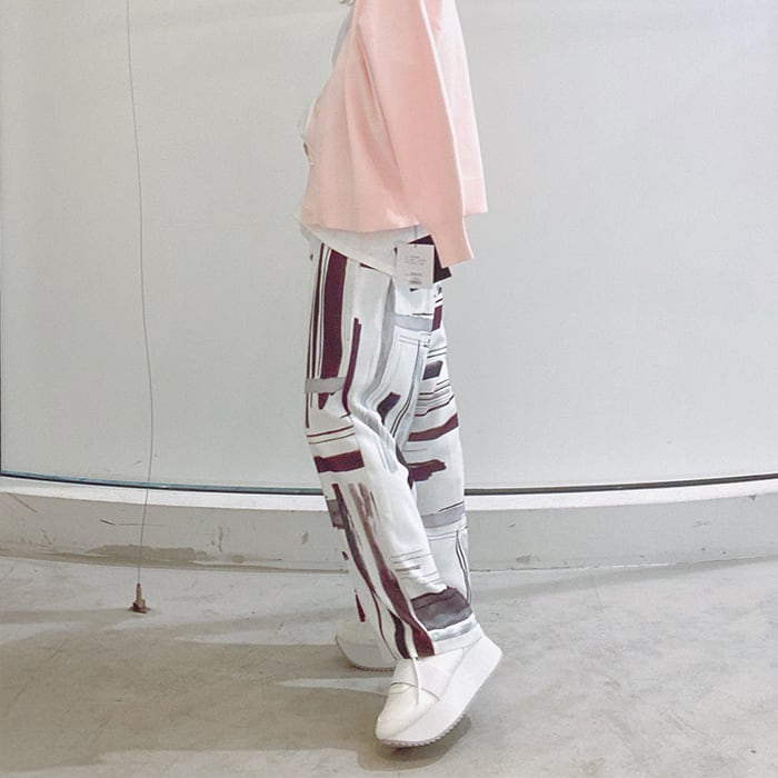 曖昧な線の重なりがリズムを描き、コレクションテーマのREFRESHに通ずる心地よい余白をもたらすテキスタイル。