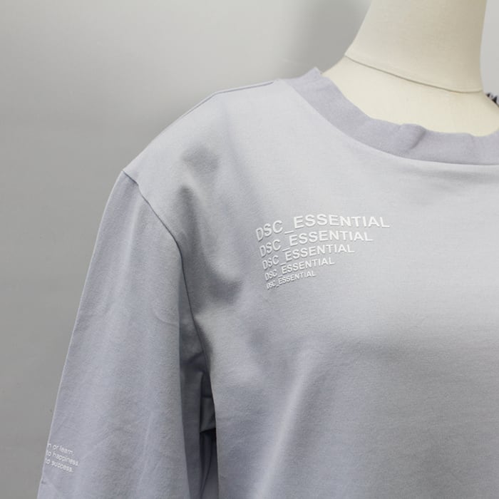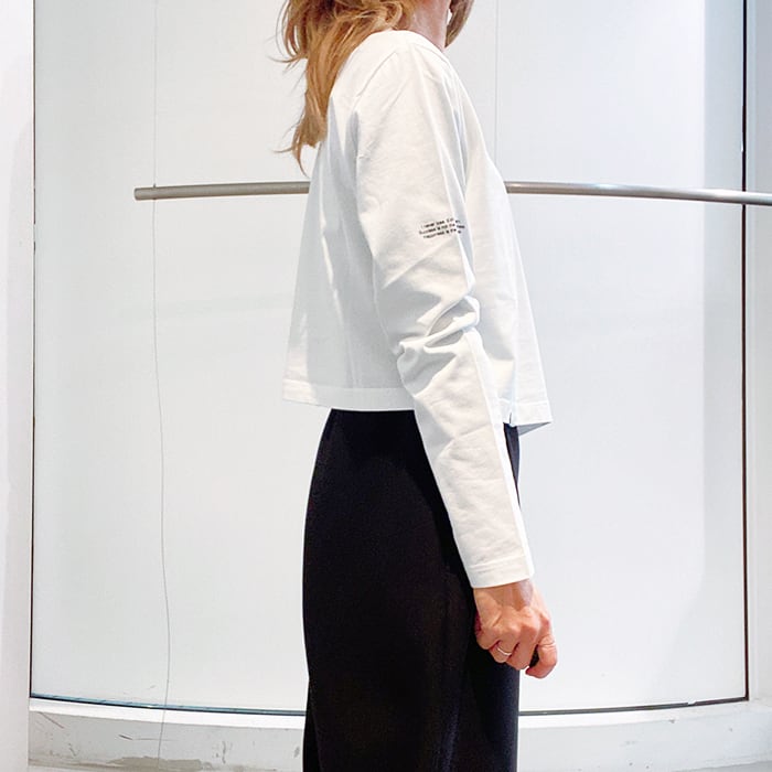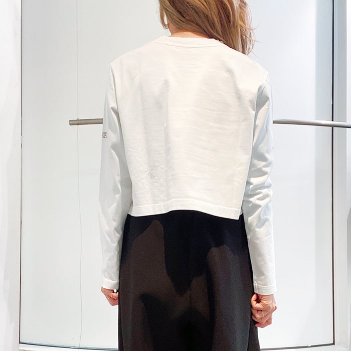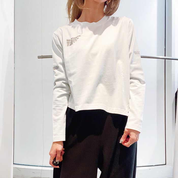 胸元のブランドグラフィックがほどよいアクセントを添える、シンプルなロングTシャツ。
