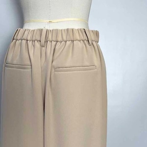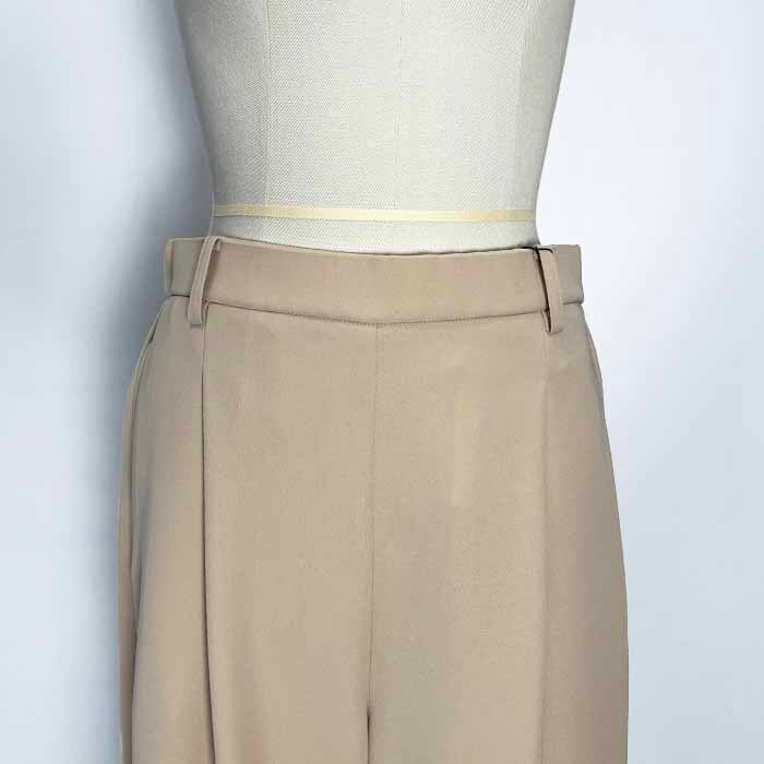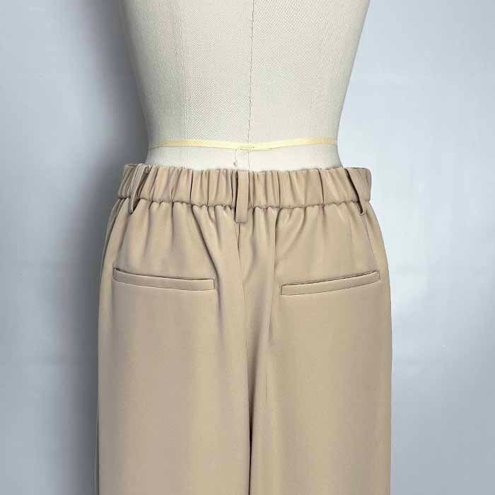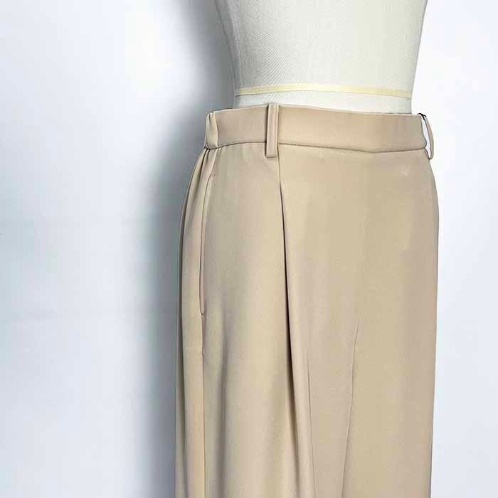 腰回りはすっきりと仕上げ、フロントタックで立体感をプラス。
