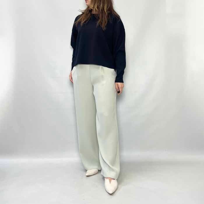シンプルなパンツなので、トップスを選ばず着用できます。