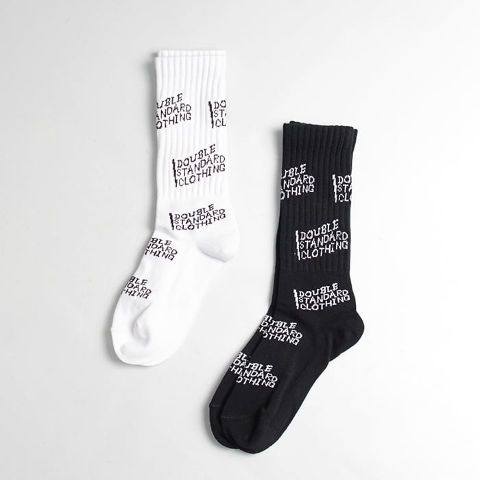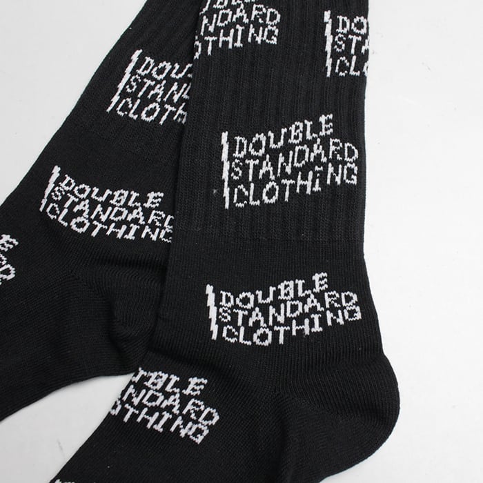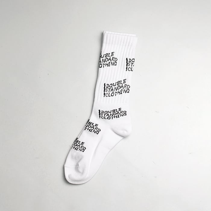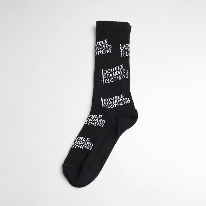 全面的に手書き調のブランドロゴグラフィックをあしらったソックス。