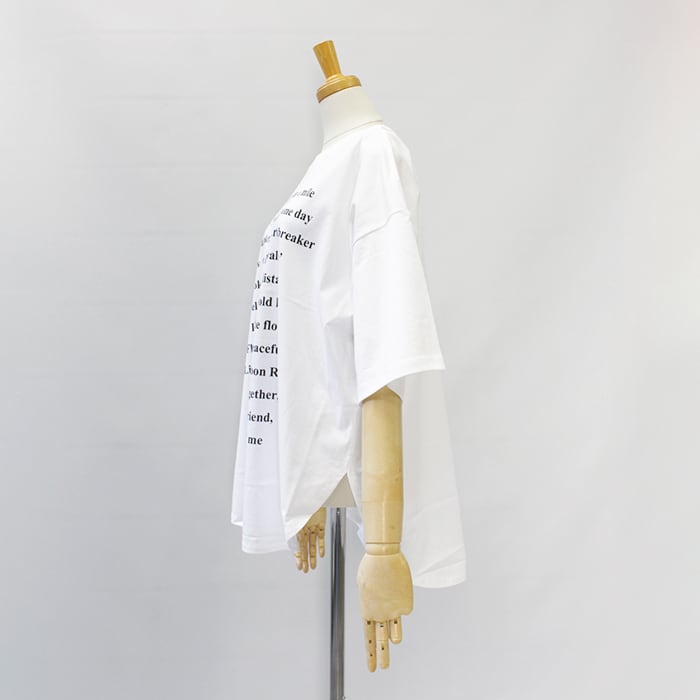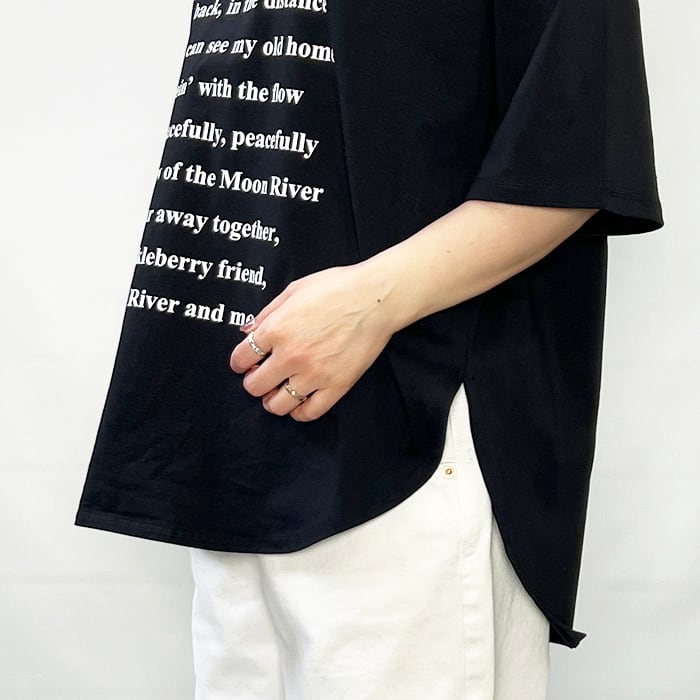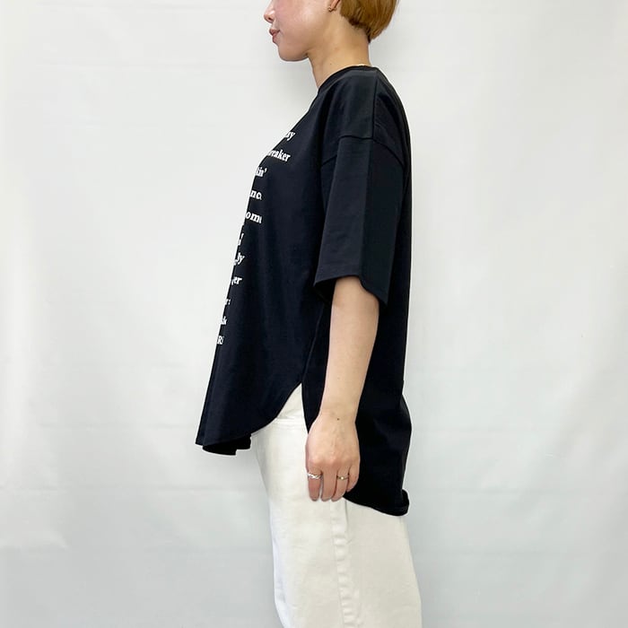 フロントに大きく入れたオリジナルリリックのロゴデザインが存在感を発揮するメッセージTシャツ。