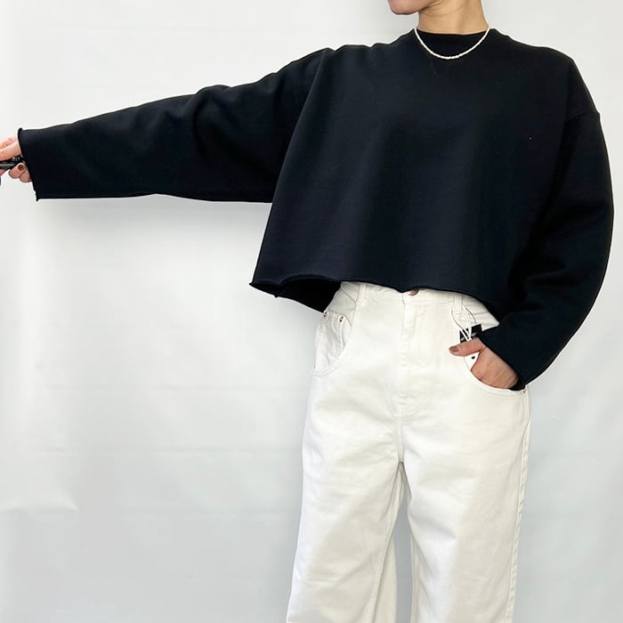 クロップド丈とやや長めの袖丈のバランスが絶妙な、シーズンムード感じる一着です。
