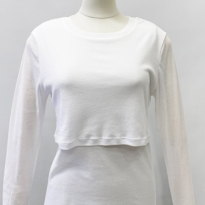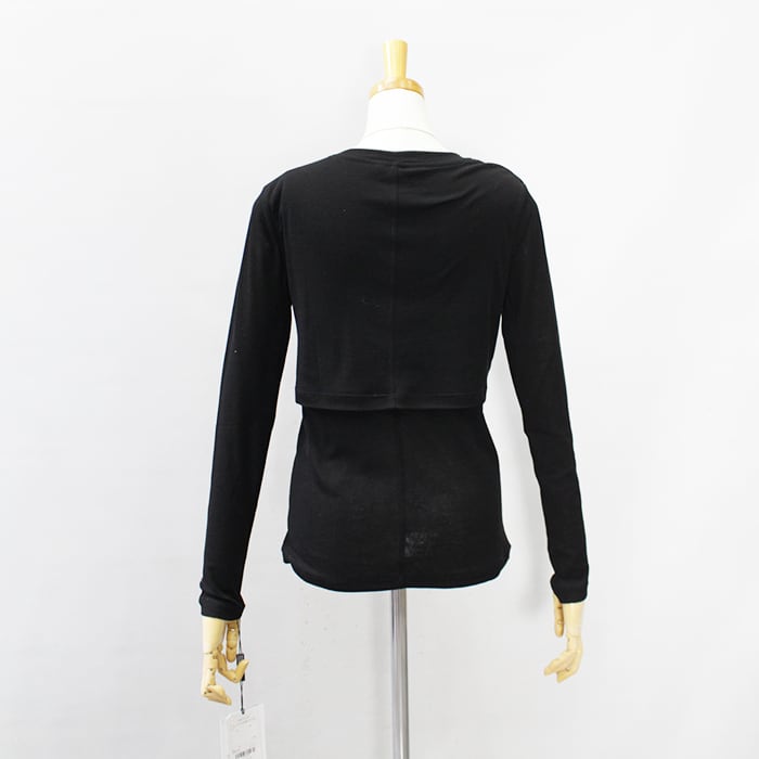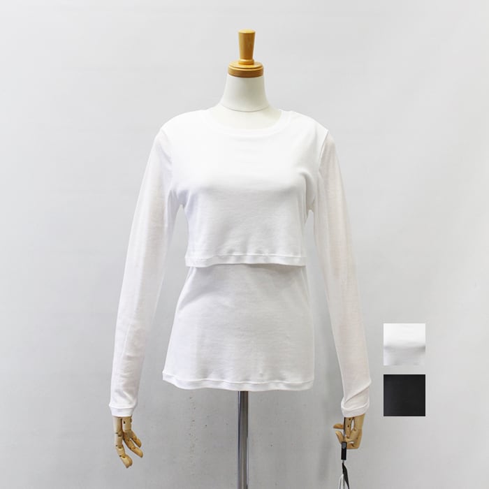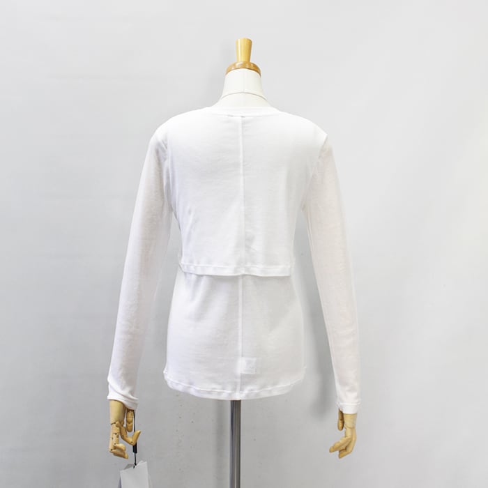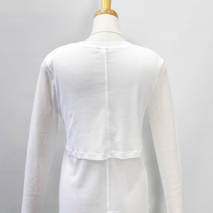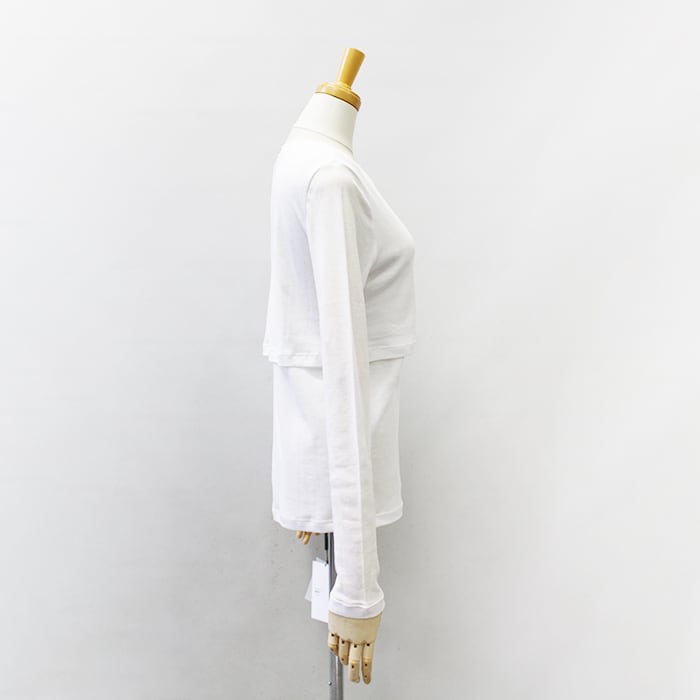 1枚でレイヤードしているように見えるデザインが魅力のトップス。