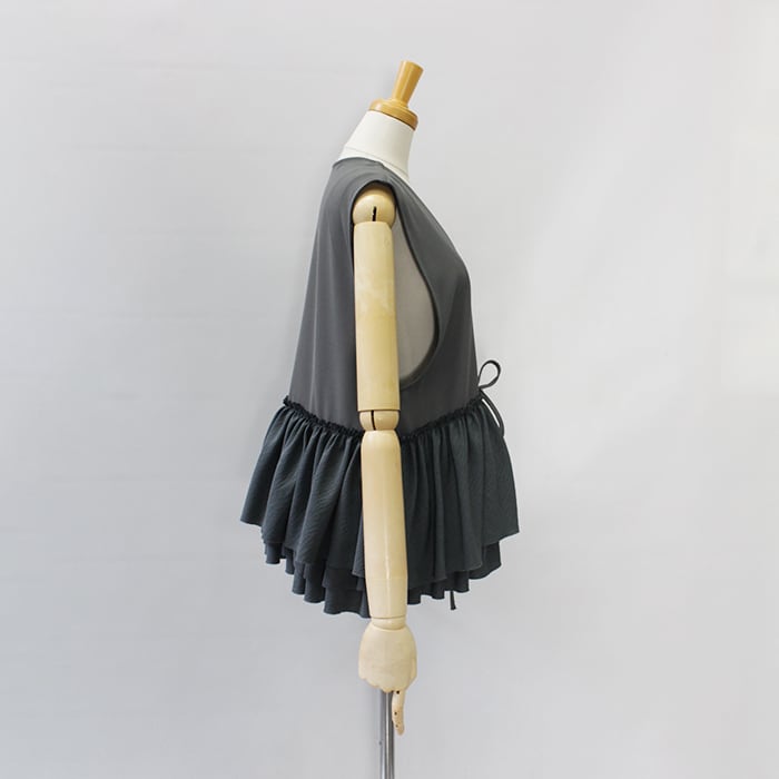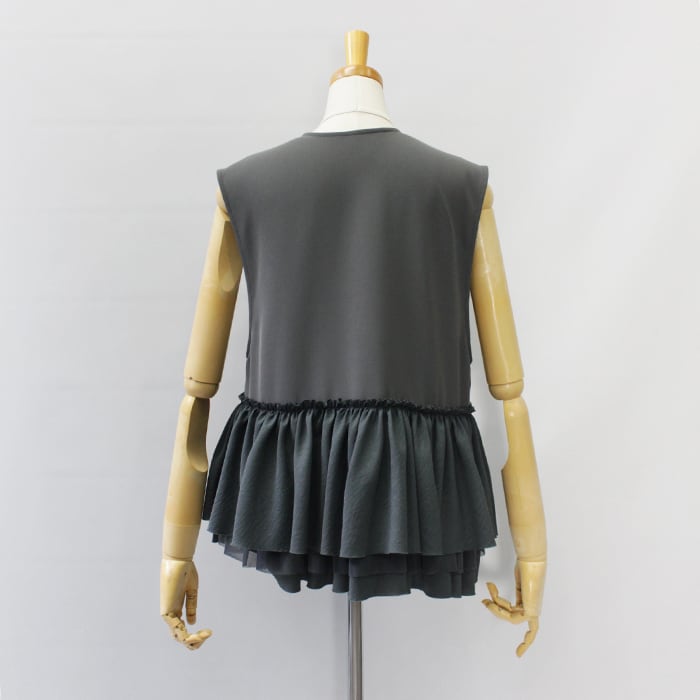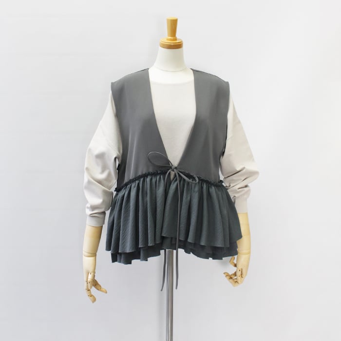 ふんわりとしたフリルデザインが、シンプルなコーディネートに華やかさをプラスし、上品なアクセントに。