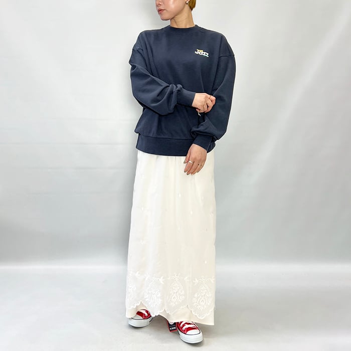 エプロンはレイヤードしてデニムに合わせたり、スカートは1枚でも。