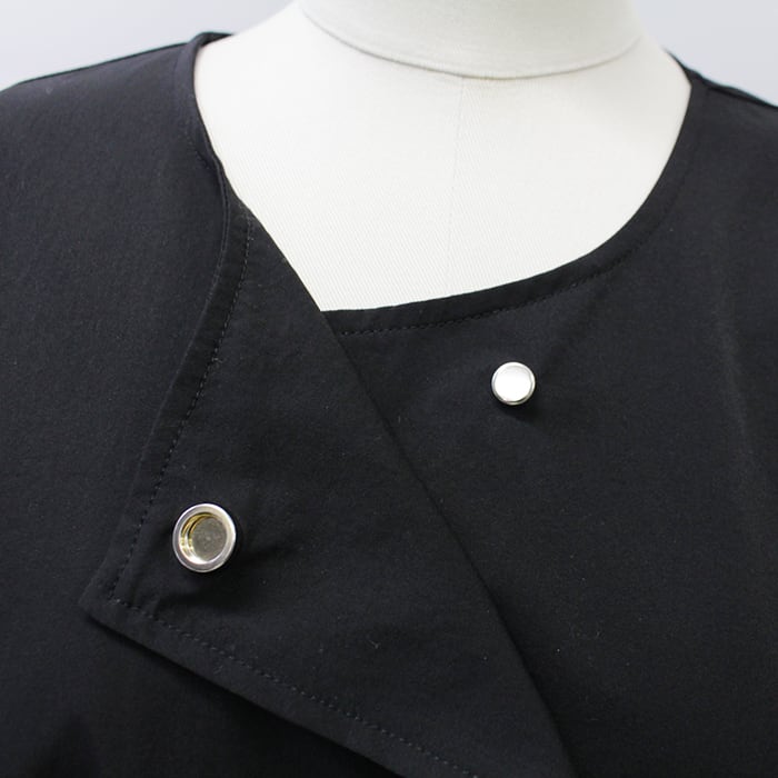 隠れボタンにノーカラーのシンプルなデザインは、合わせるアイテムを選ばない万能さ。