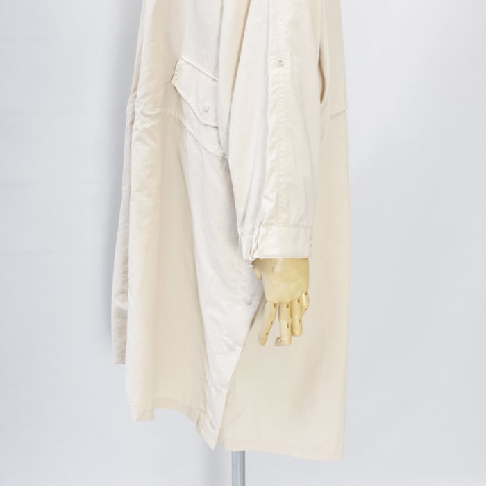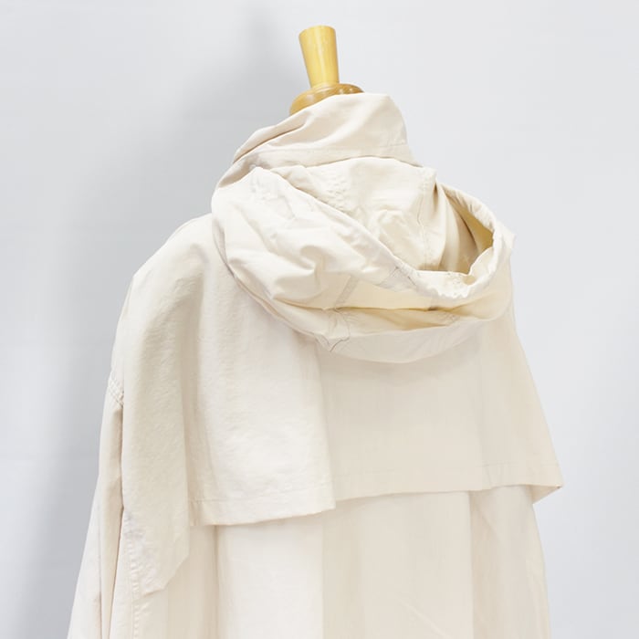 M65のフィールドコートのディテールを取り入れたポンチョ型パッカブルコートです。