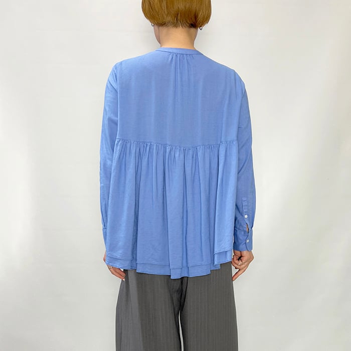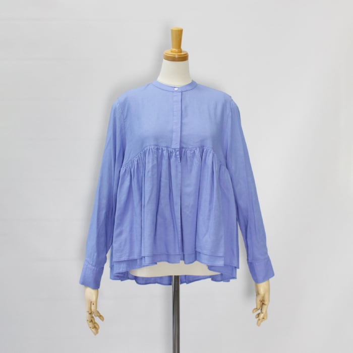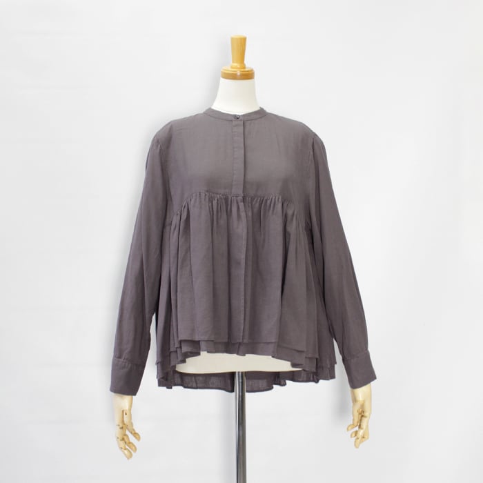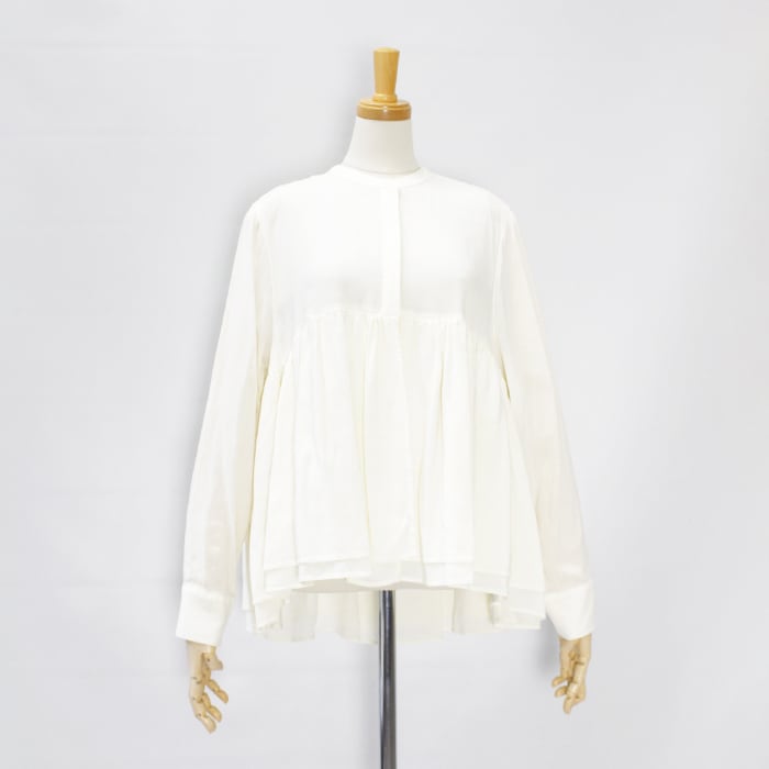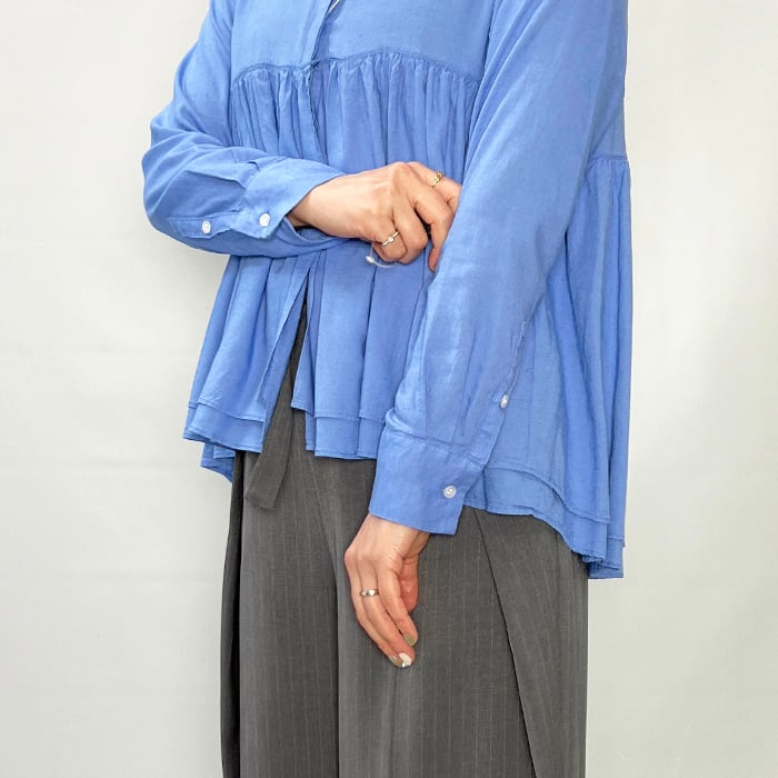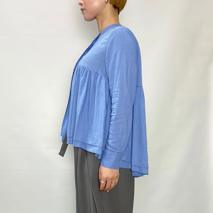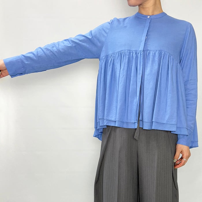 生地を2枚重ねギャザーによる動きとボリュームを出した裾がポイントのレイヤードブラウスです。