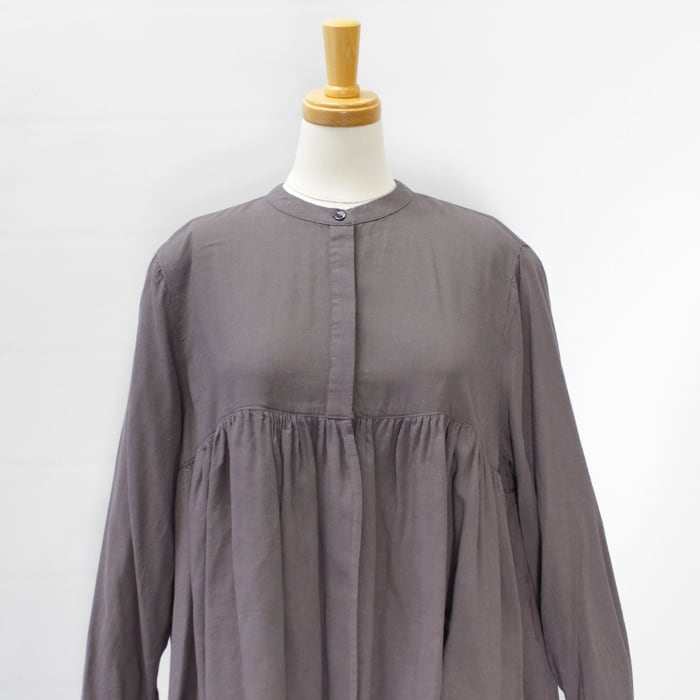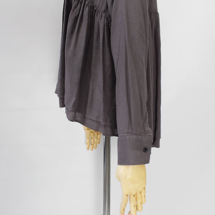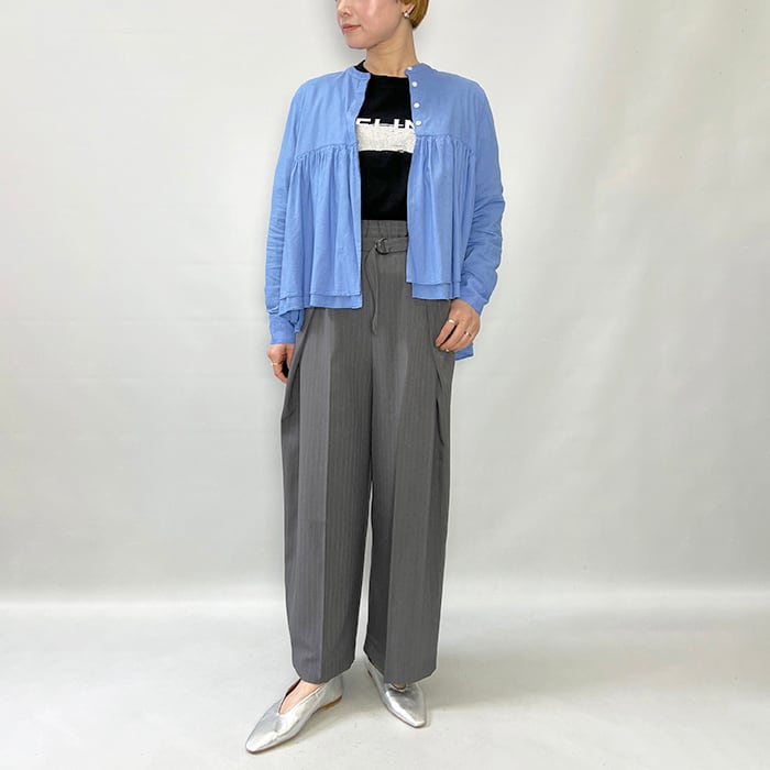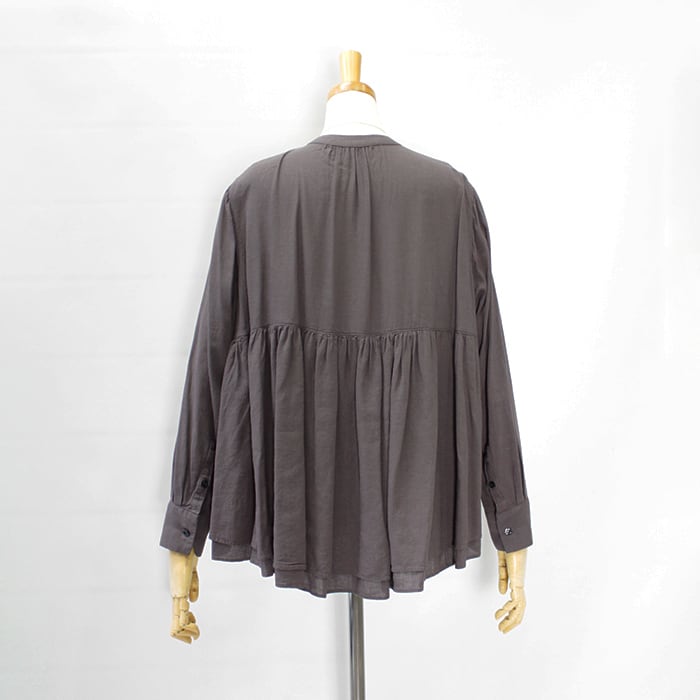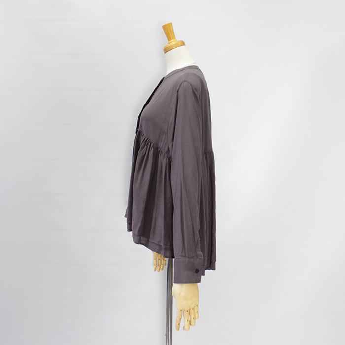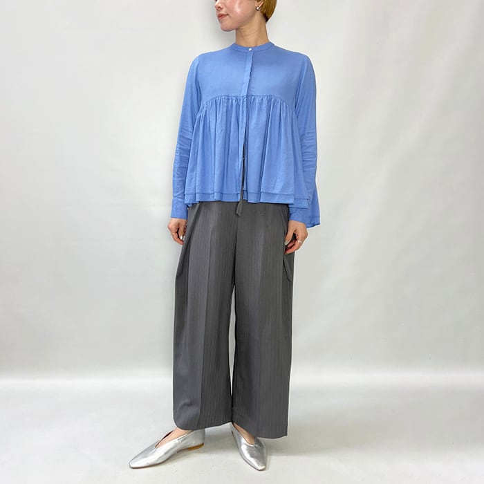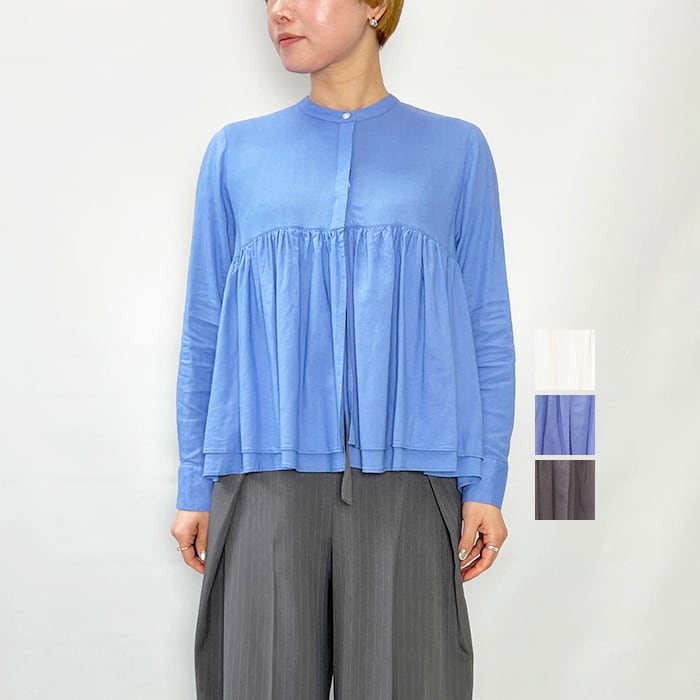 生地を2枚重ねギャザーによる動きとボリュームを出した裾がポイントのレイヤードブラウスです。