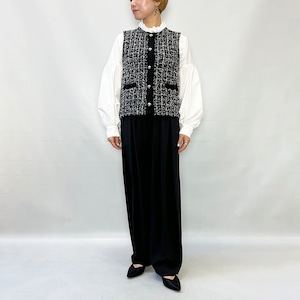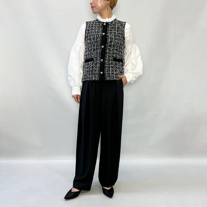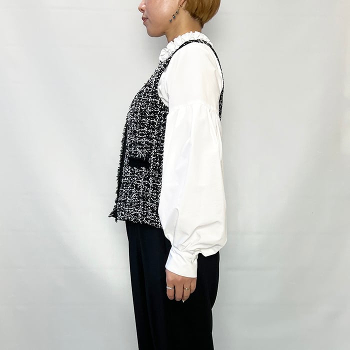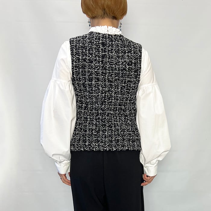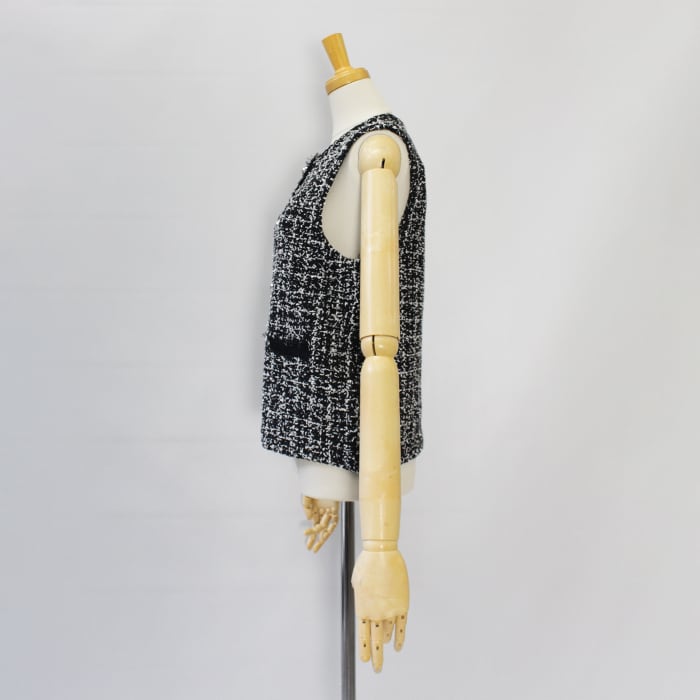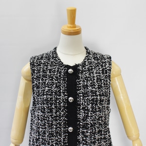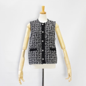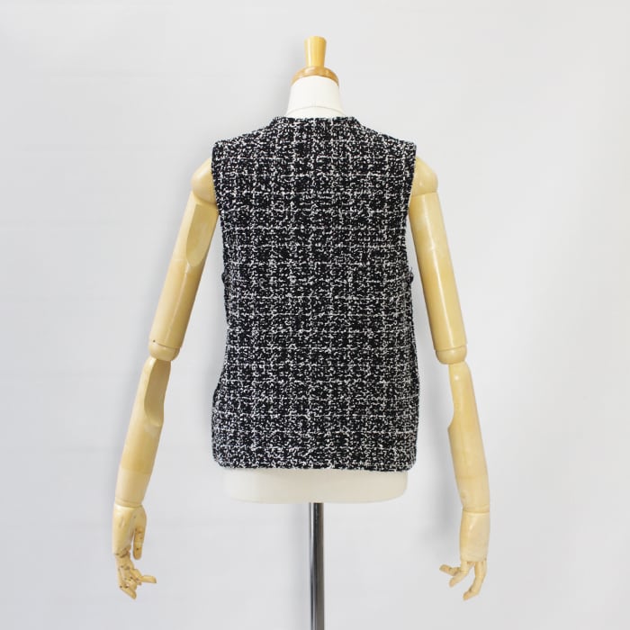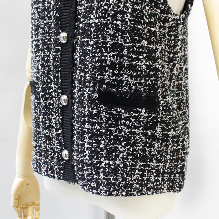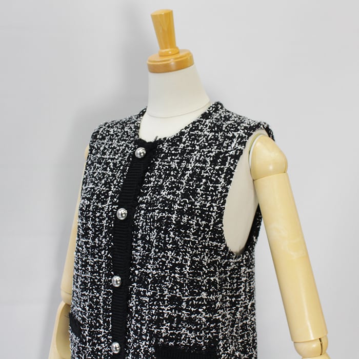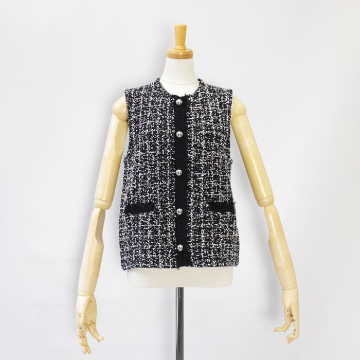 ツイードをニット素材で表現したフリンジがアクセントのニットベスト。