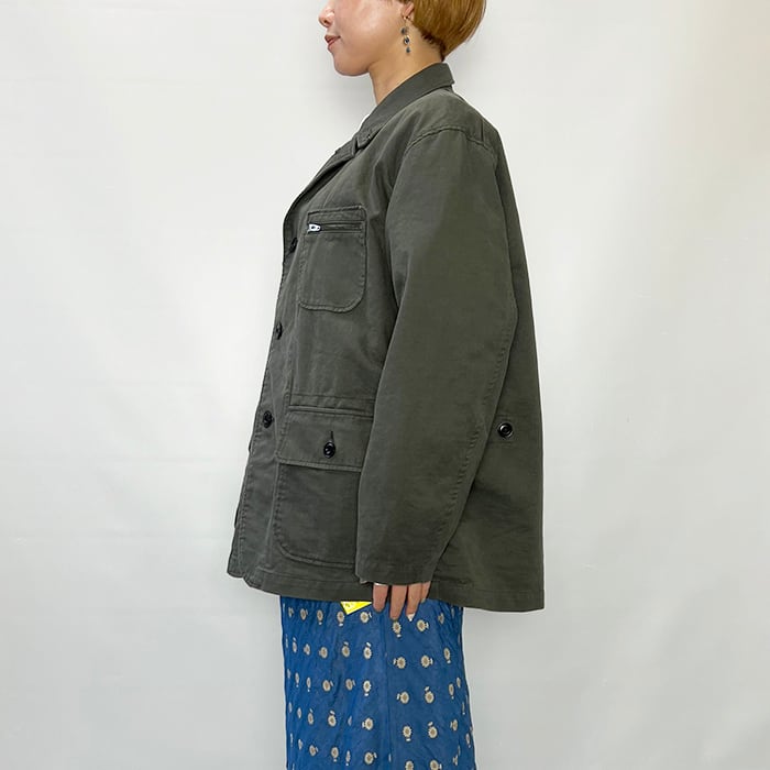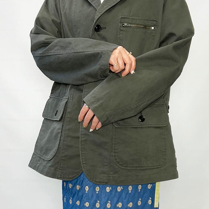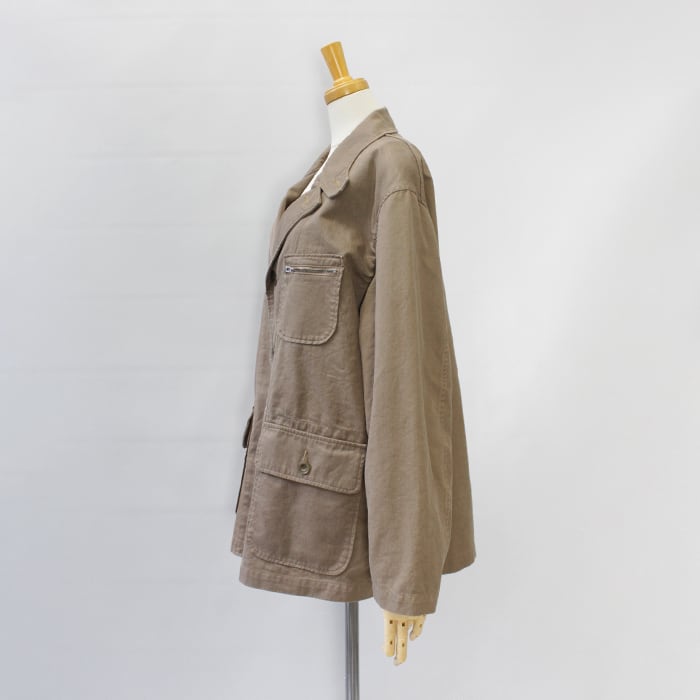 たくさんのポケットが目を引く、ワークジャケット風のライトアウター。