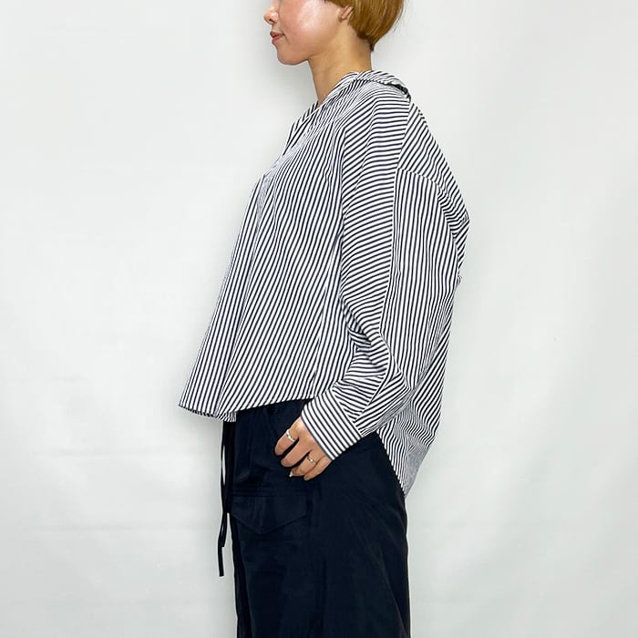コンパクトな着丈が軽やかでボトムスとも合わせやすいバランスです。