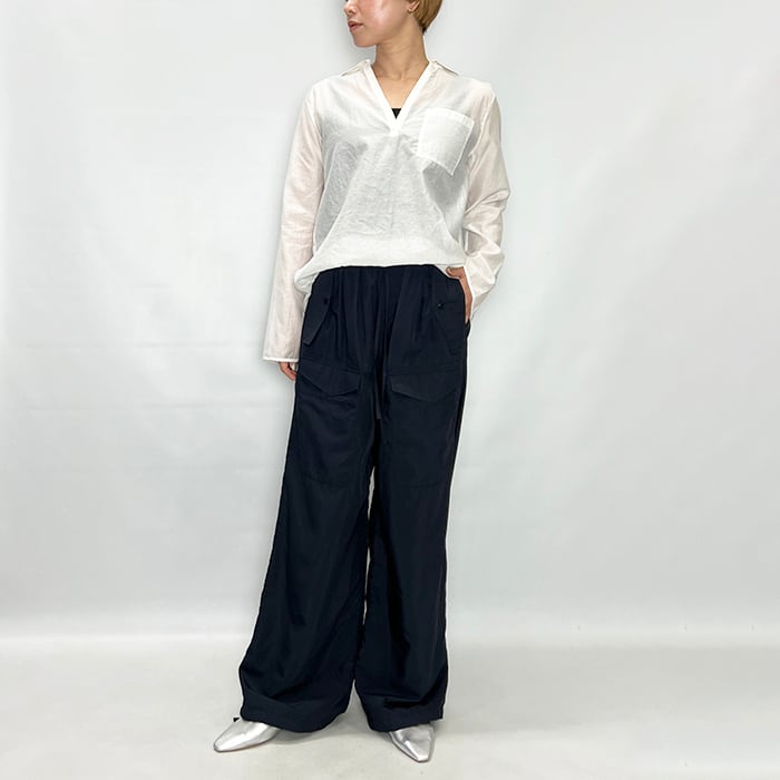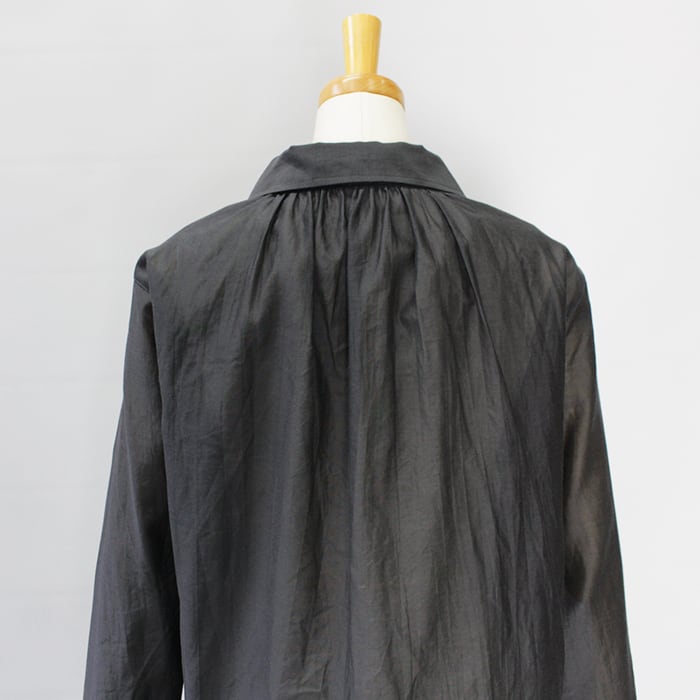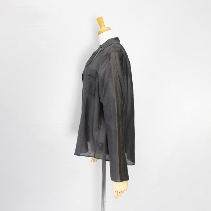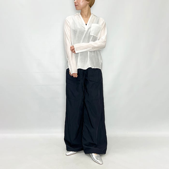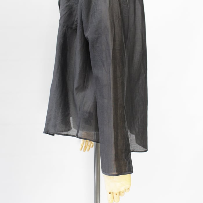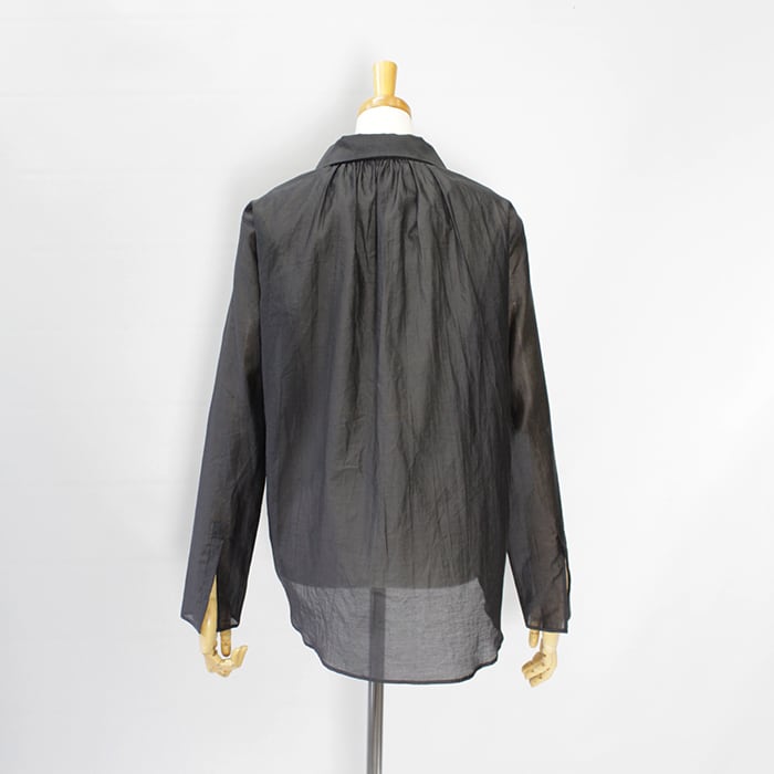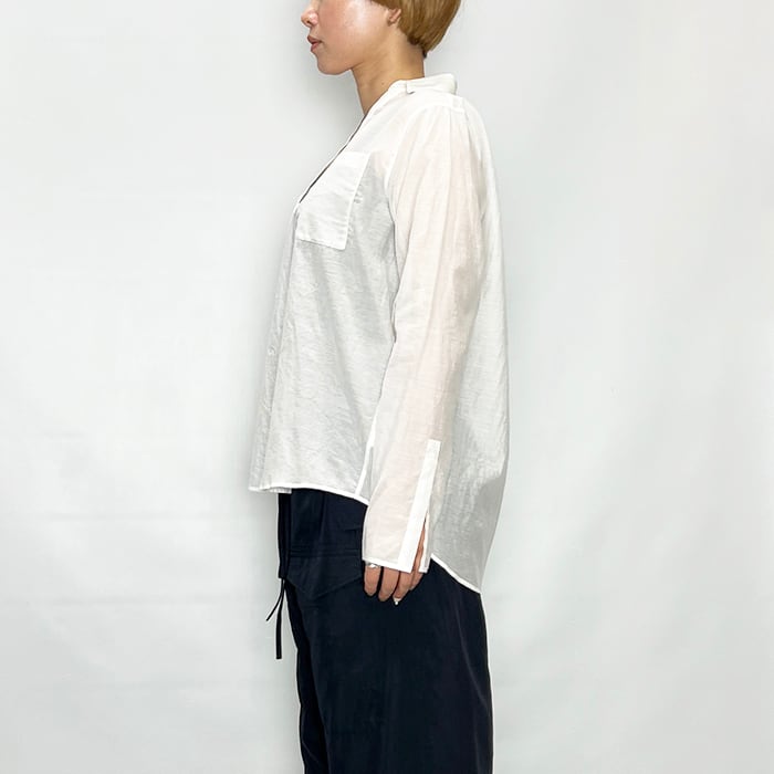 コットンシルクのシアーな繊細さと、すっきりした衿元や袖口のデザインの甘辛バランスが良い、クリーンで知的なスキッパーシャツです。