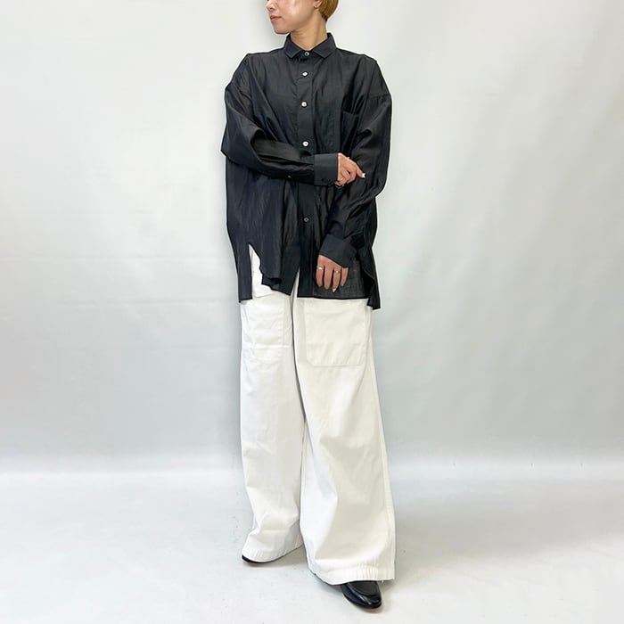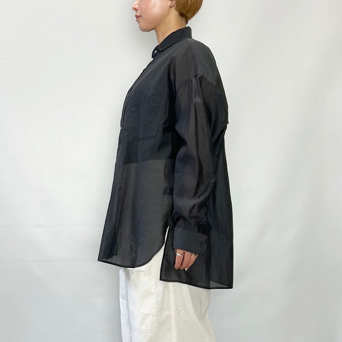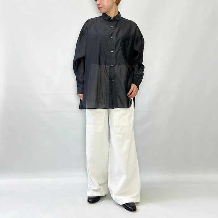 TICCA の定番スクエアビッグシャツを涼しげで女性らしいシアー素材で仕立てました。