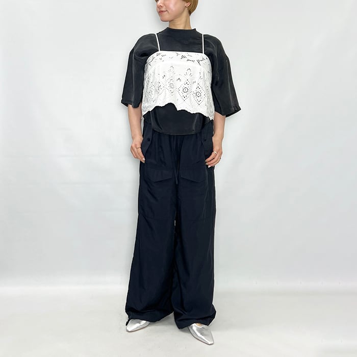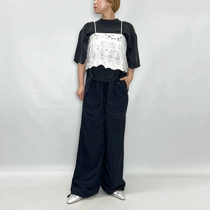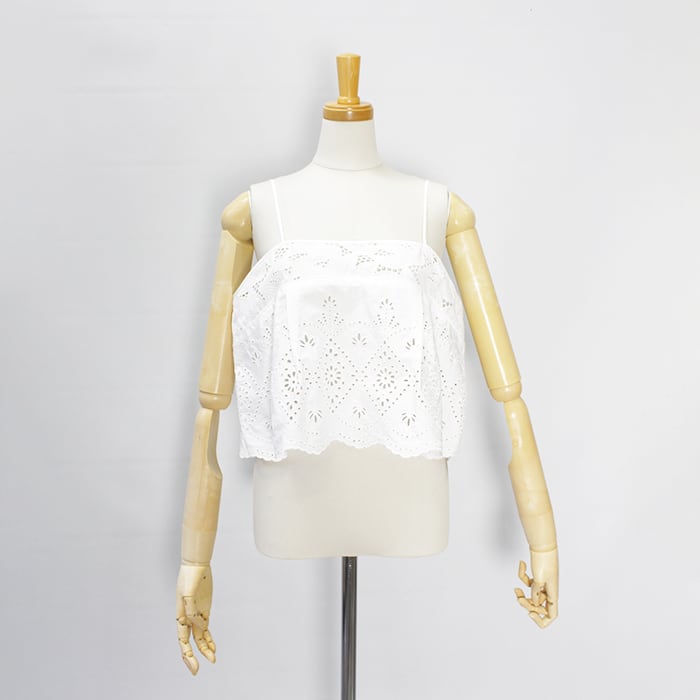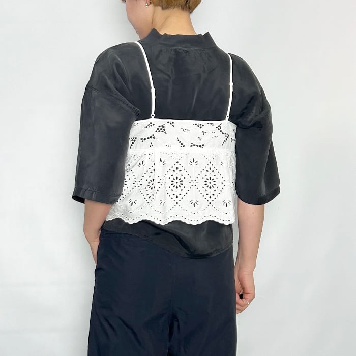 木蓮の花をモチーフにした大胆な大花柄と繊細な小花柄のスカラップレースを組み合わせたキャミソールです。