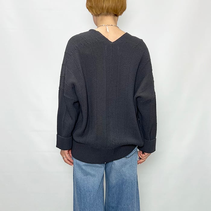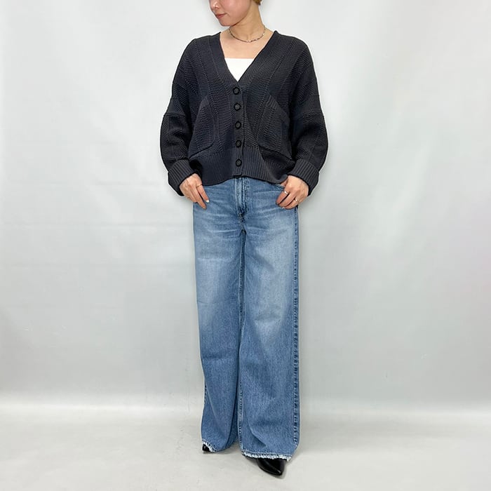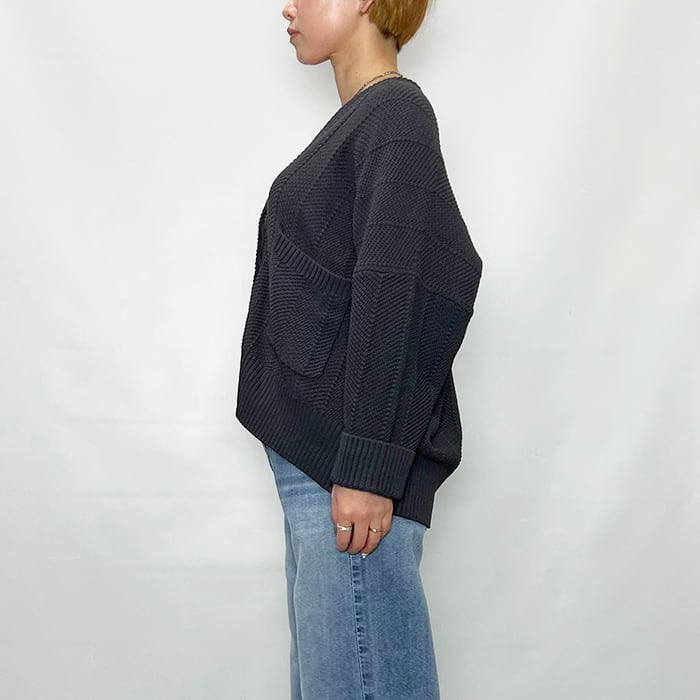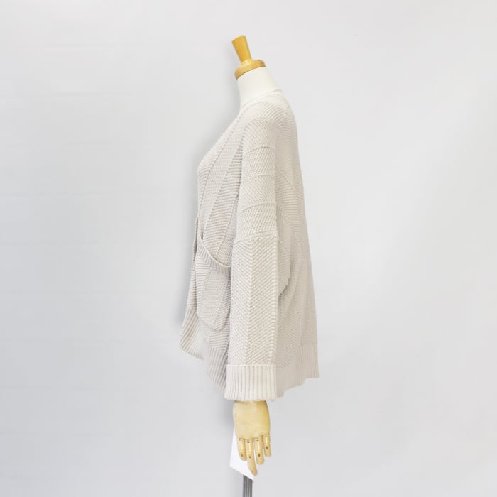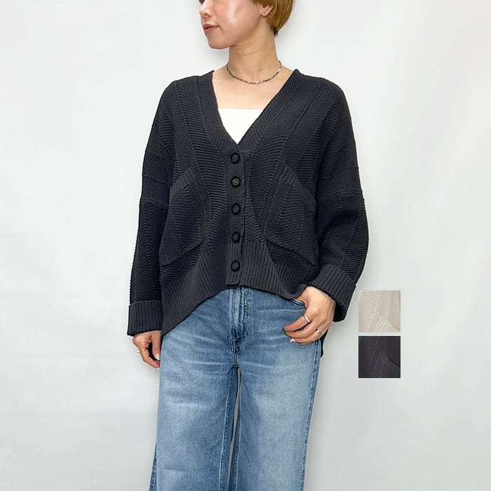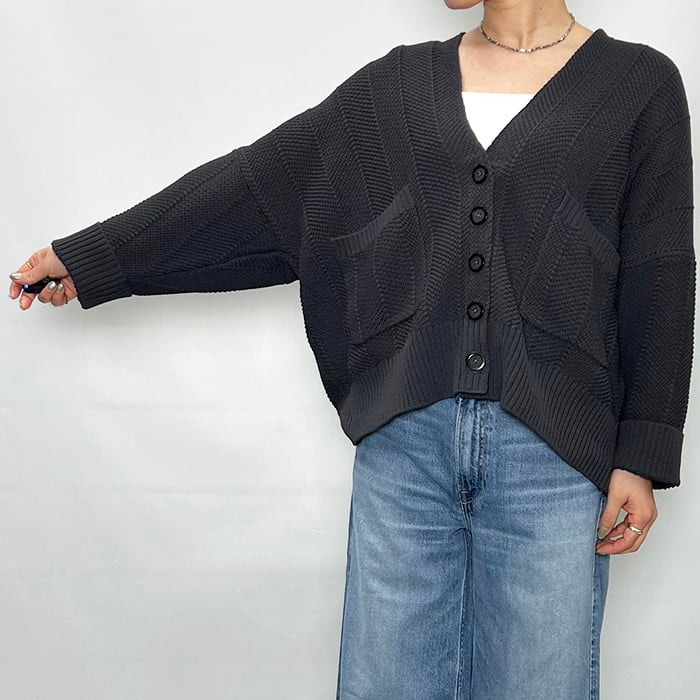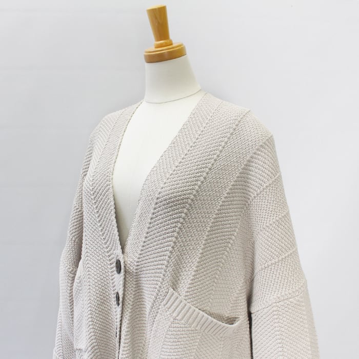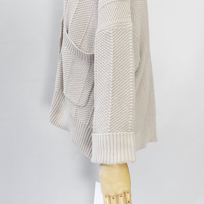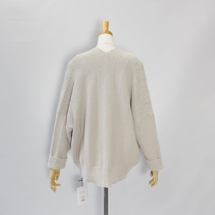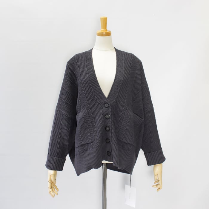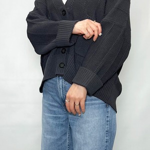 さり気ないヘリンボーン柄の編み地で表情のあり気軽に羽織れる一着。