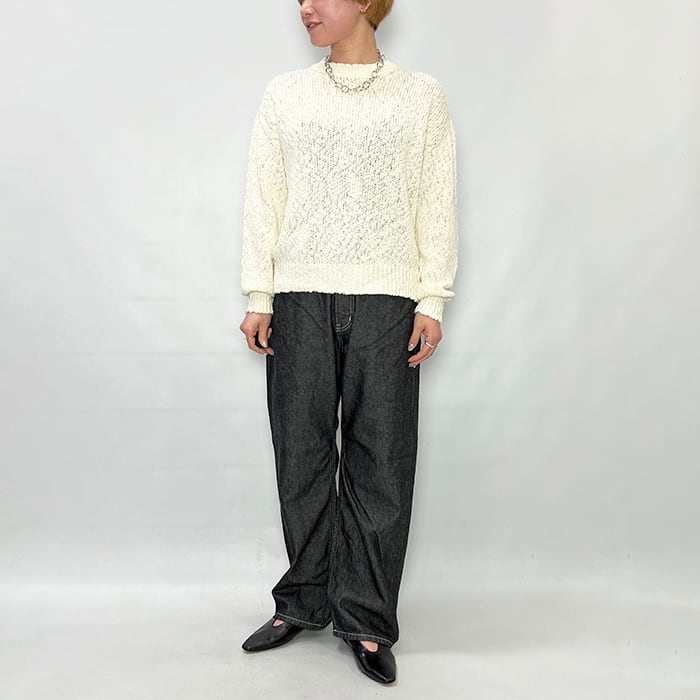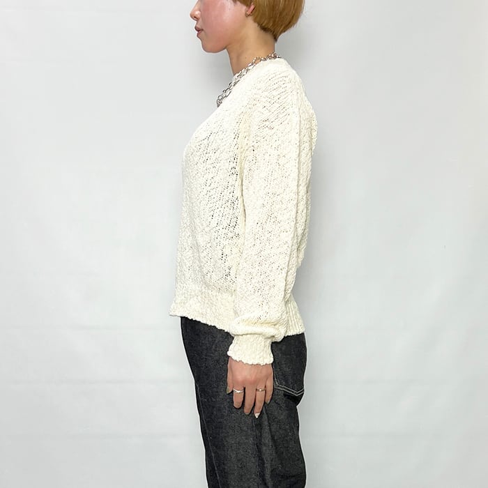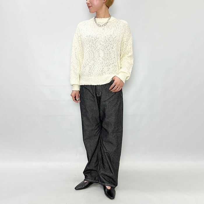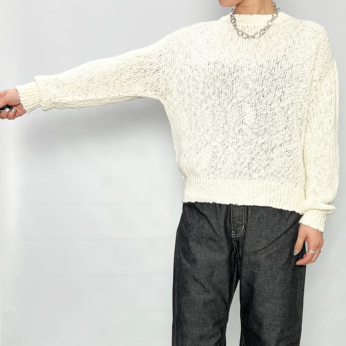 ベーシックなアイテムですが凹凸のあるスラブヤーンでポイントになる一枚です。