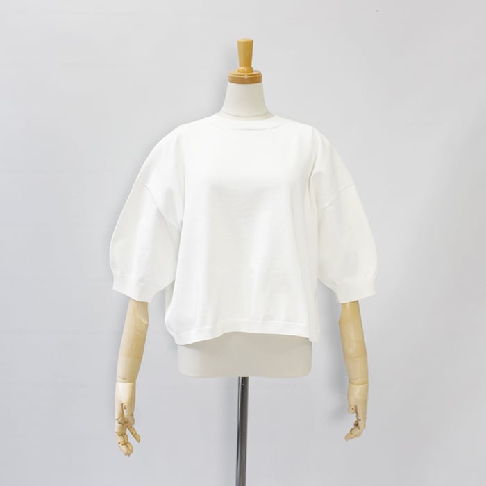 少し短めの着丈なのでワイドパンツなどに合わせていただくのもおすすめです。 Tシャツライクながらさり気ないパフスリーブもポイントです。 【素材】
