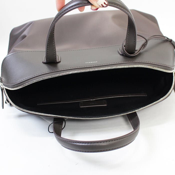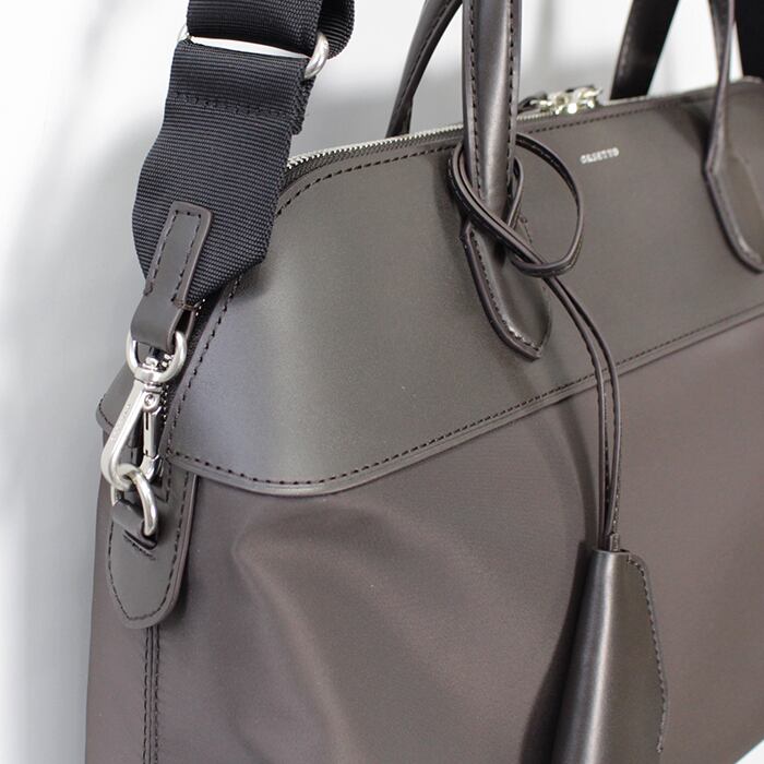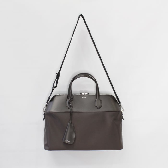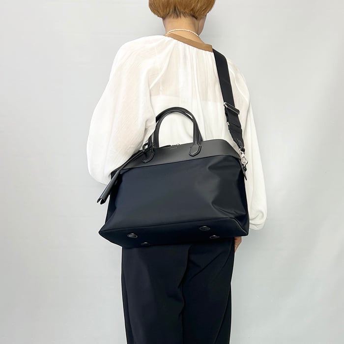 アクセントにもなるナイロンの50mm太幅ショルダー付きで、オフィスから1泊程度の荷物にもちょうど良く、幅広く使用できます。