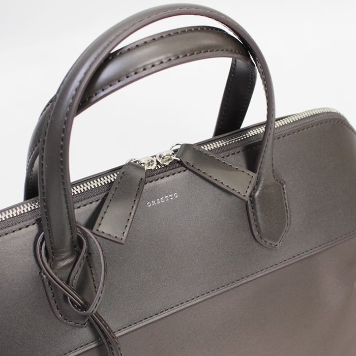 ラウンドファスナーのボストンタイプ、14インチのパソコンが収まるサイズです。