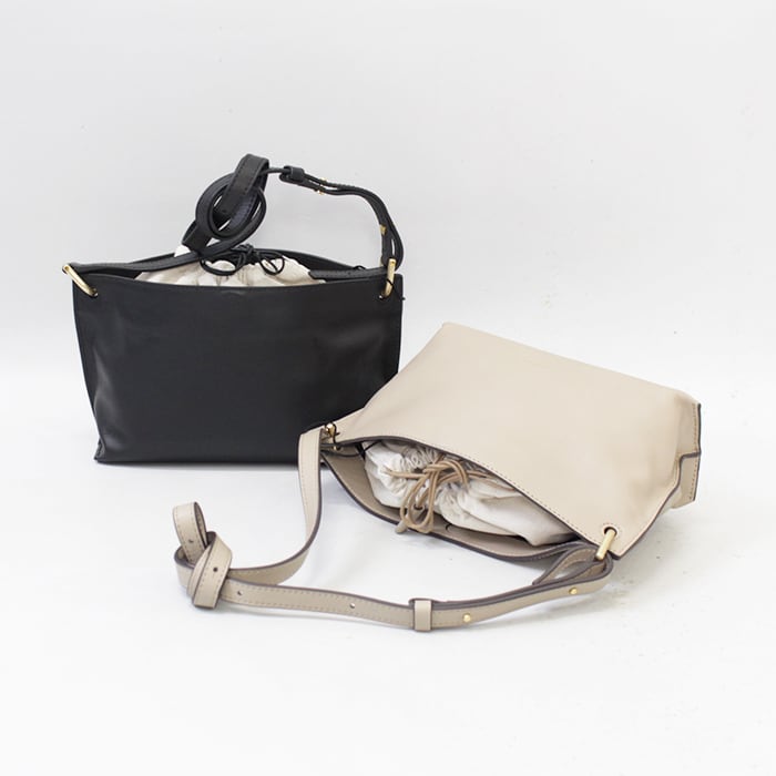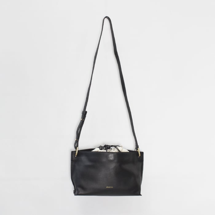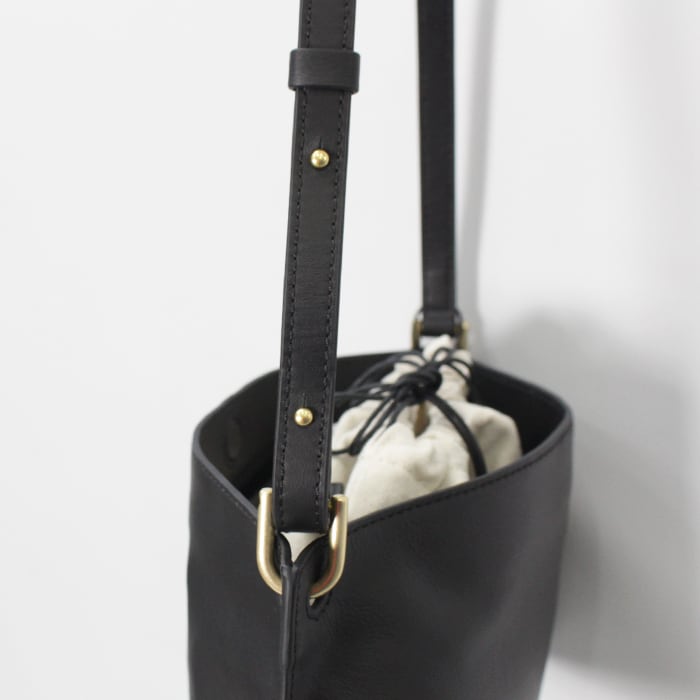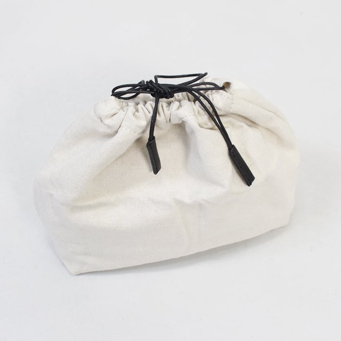 巾着を外して持てば、よりミニマルで洗練された印象に。