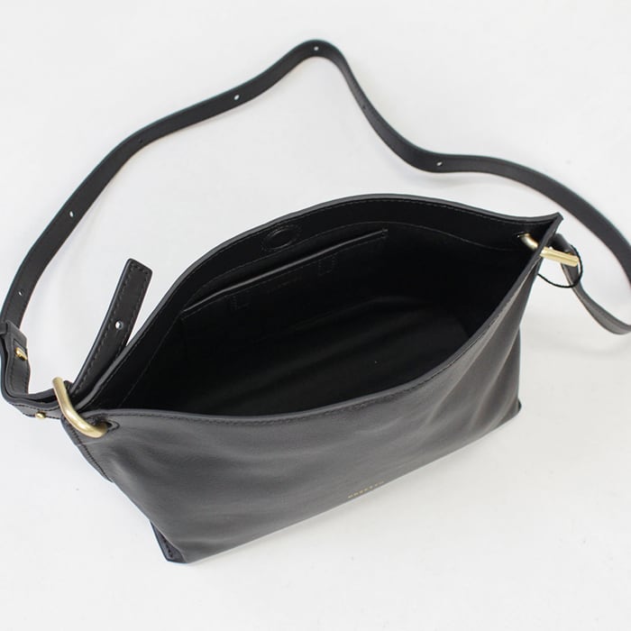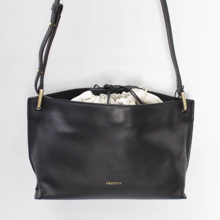 柔らかなスムースレザーを使用したショルダーバッグ。