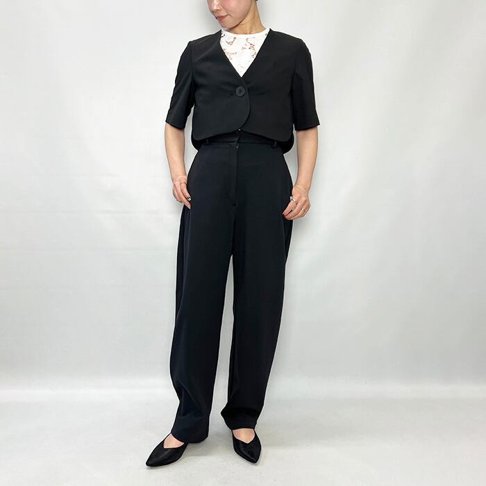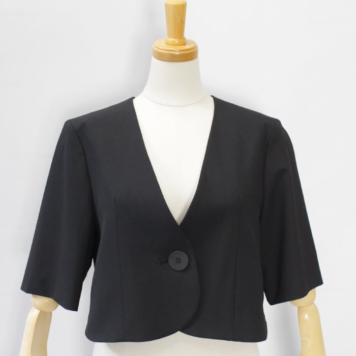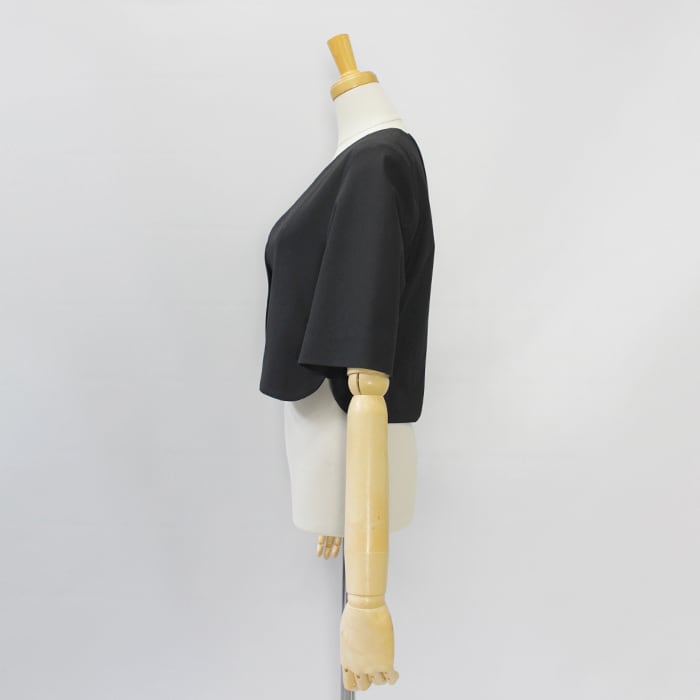 ノーカラーでショート丈ハーフスリーブのジャケット。