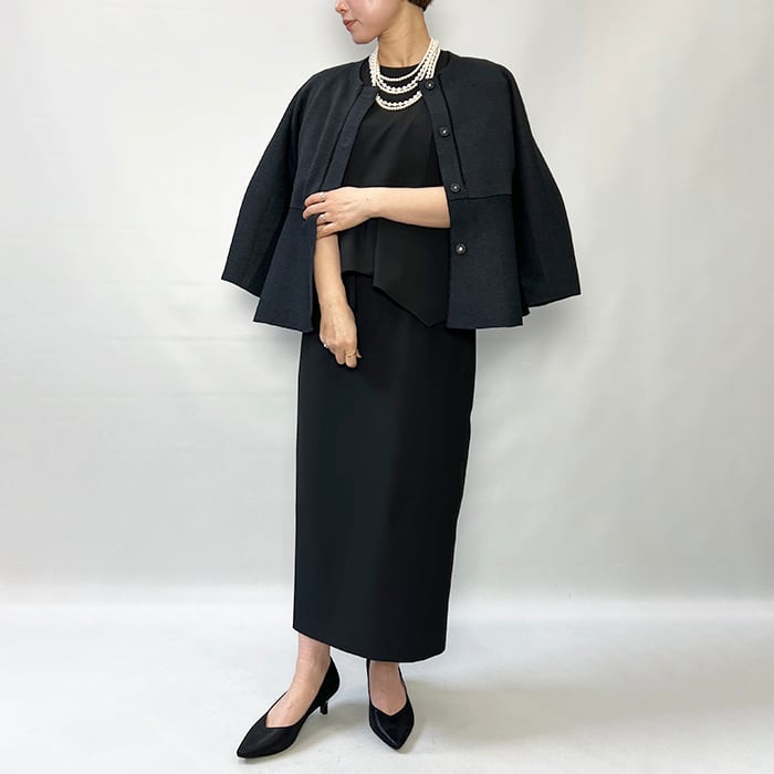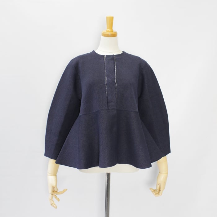 少し短めのコクーン袖と高めで切り替えたぺプラムが好バランスです。