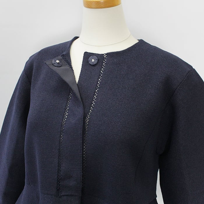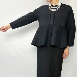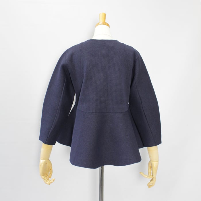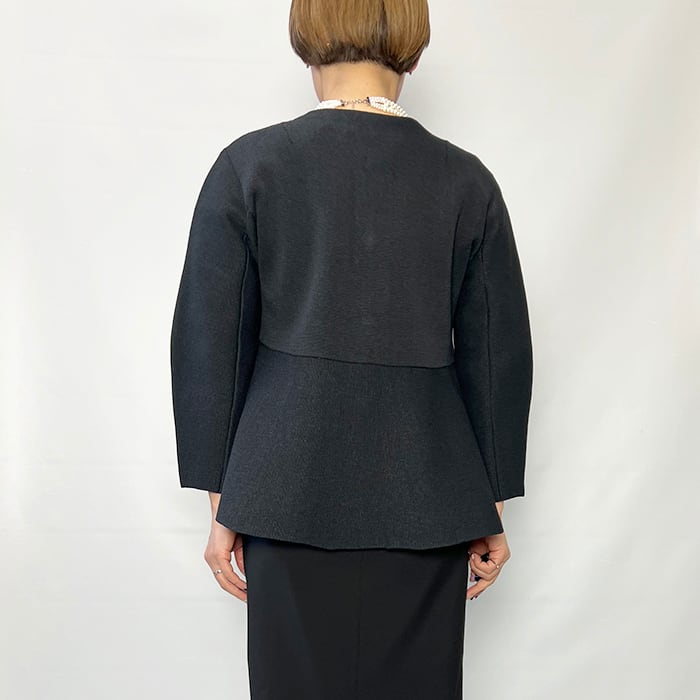 和紙ニットをポリエステルと引き揃えたミラノリブ編みが清涼感漂うぺプラムジャケット。