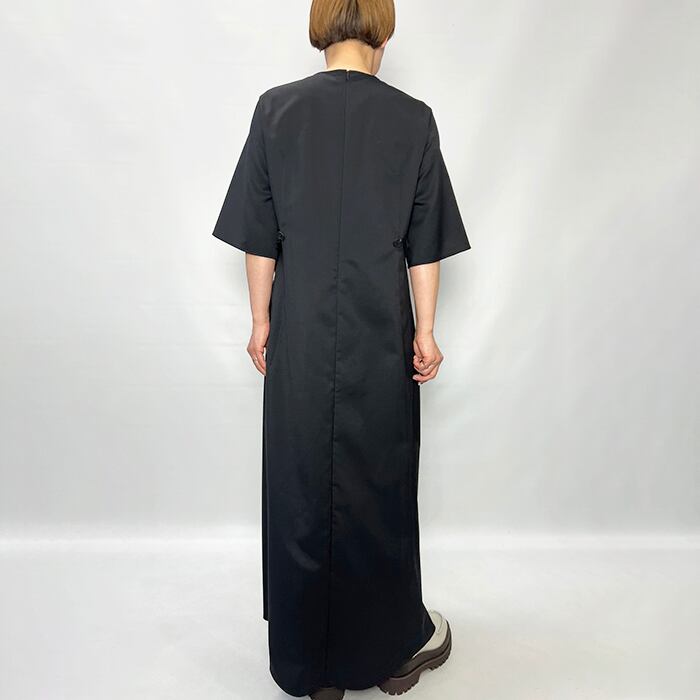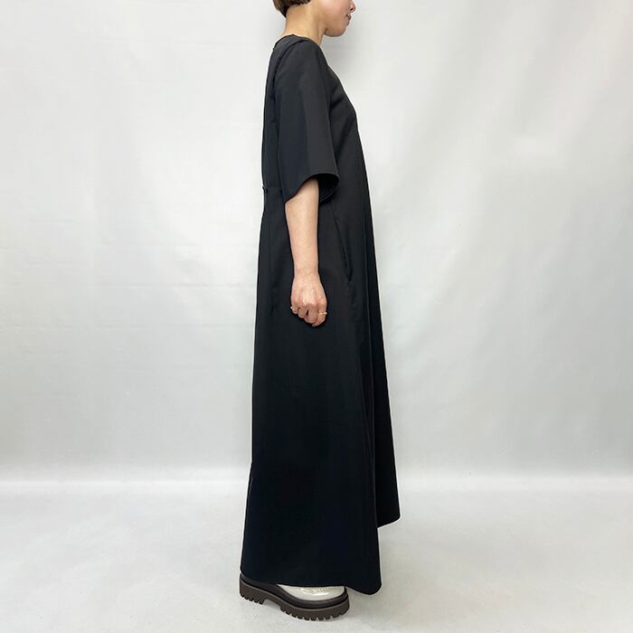 動きに合わせて揺れるドレープが美しいロングワンピース。